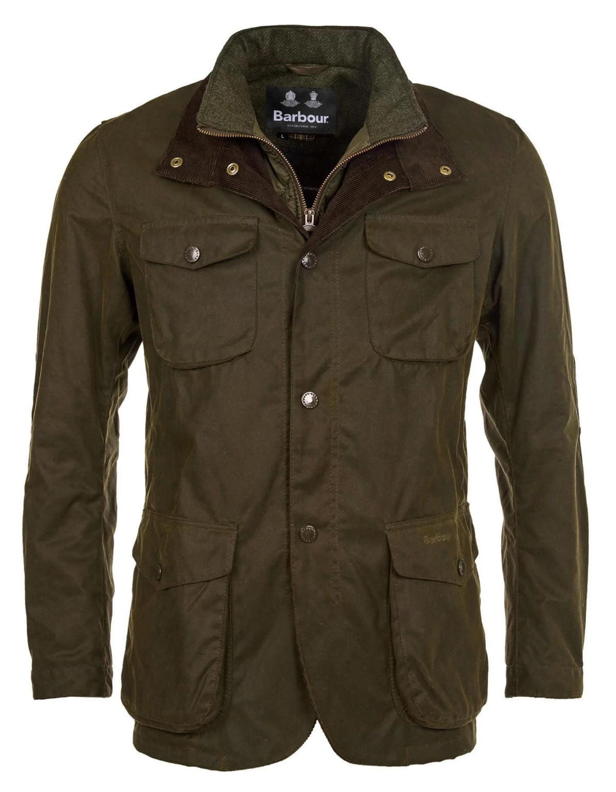 Barbour Ogston Wax Jacket gir en tidløs stil med funksjonalitet for den aktive mannen som søker beskyttelse mot været.