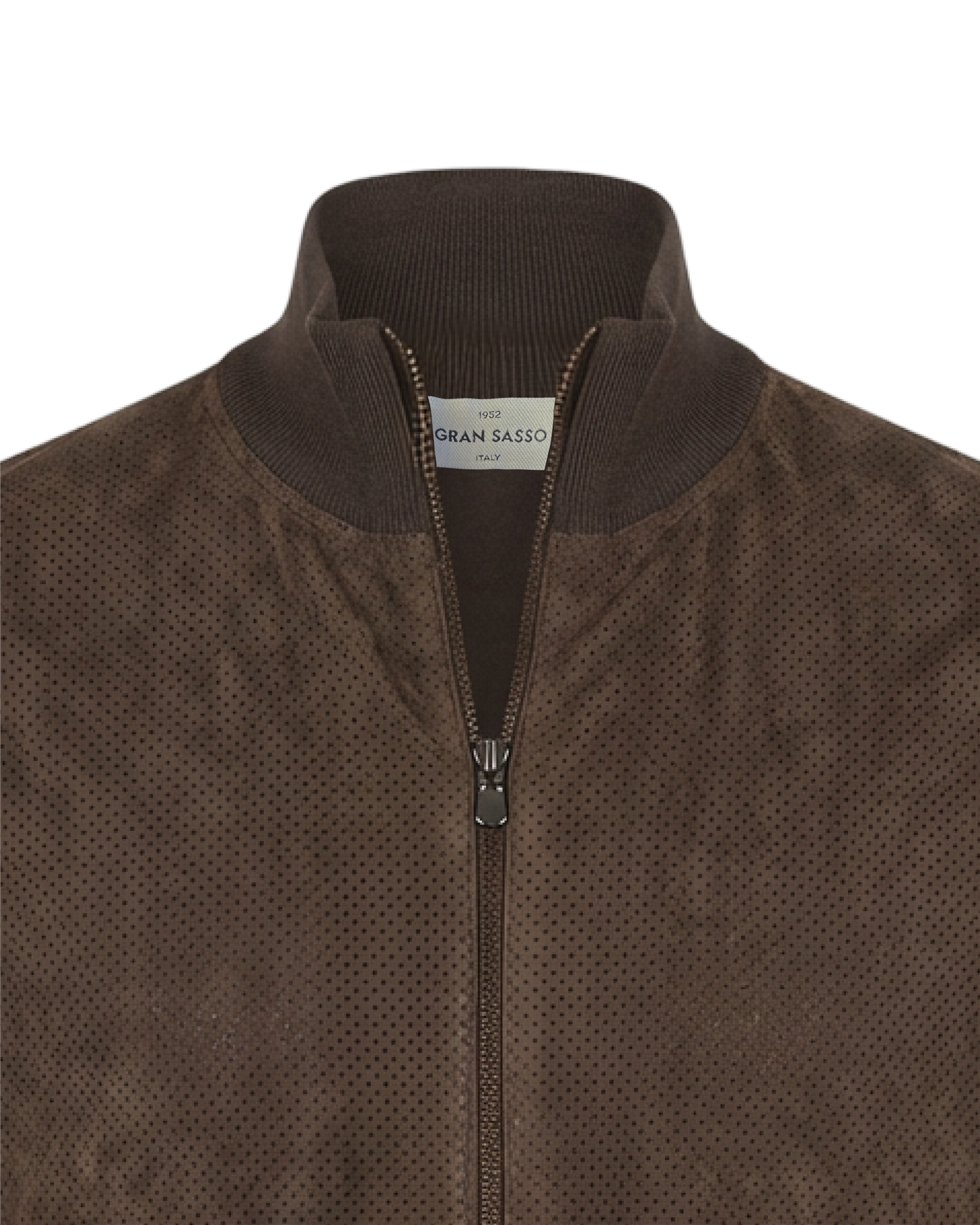 En lett jakke som kombinerer rene linjer med gjennomtenkte materialvalg. Gran Sasso har her brukt økologisk bomull som base, supplert med detaljer i Alcantara – et materiale kjent for sin myke, semskede følelse og slitestyrke. Resultatet er et plagg som både ser skarpt ut og tåler bruk.