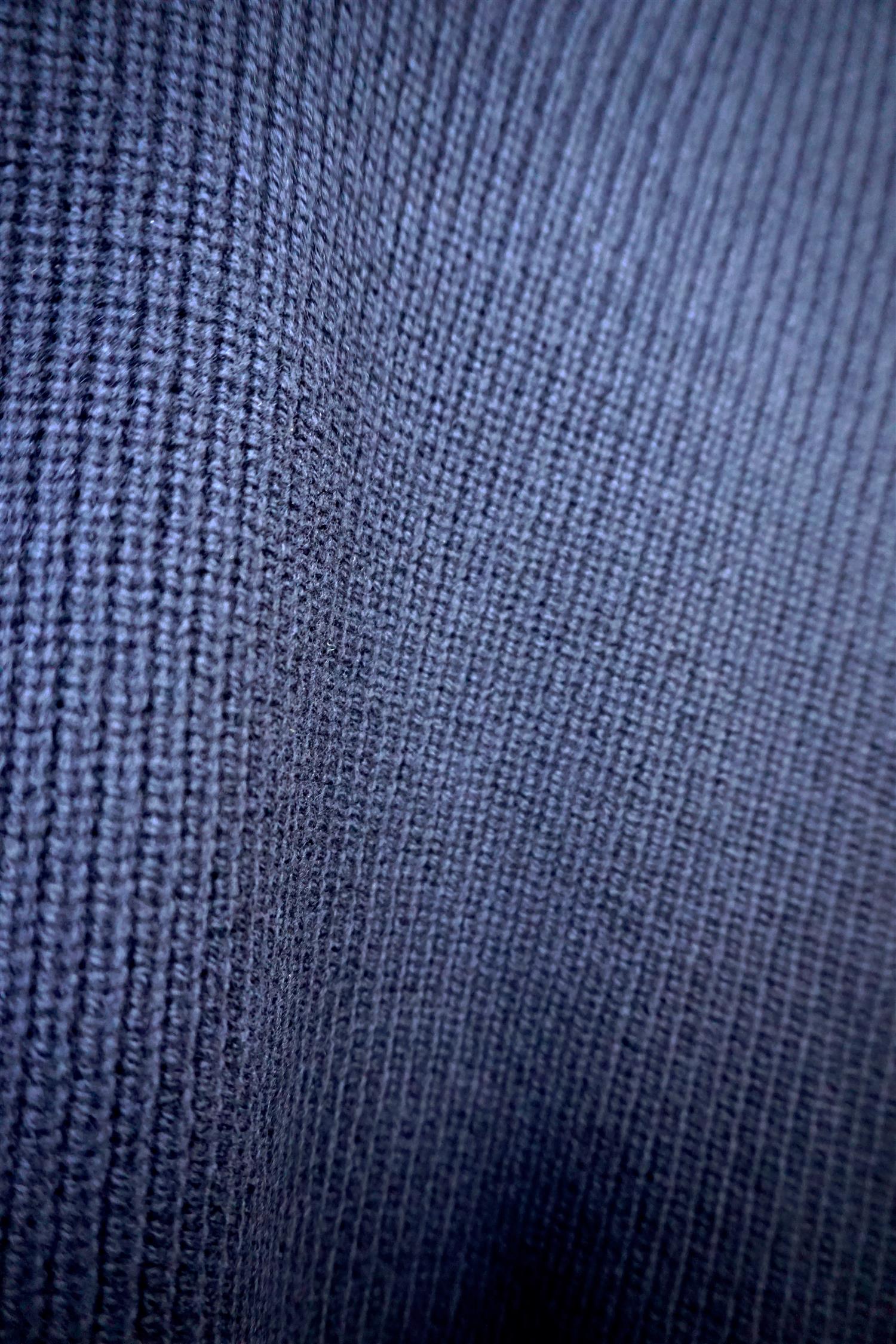 Ribbet Strikkegenser med Skipperkrage i 100% ull - Navy