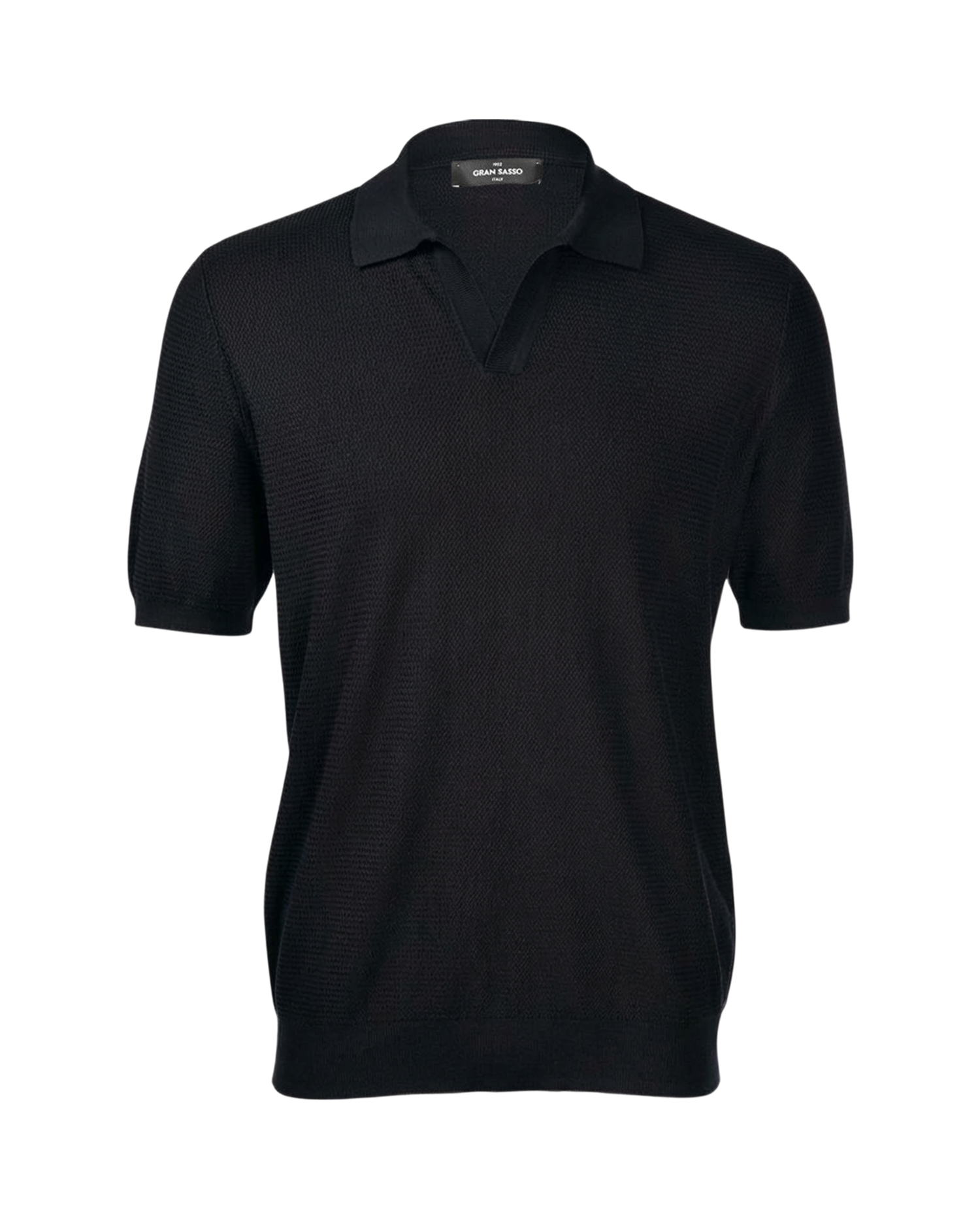 En poloskjorte som treffer den klassiske tennisstilen – men med Gran Sasso sin egen finesse. Denne kortermede poloen kombinerer en lett strukturstrikk med en ren, knappeløs krage, som gir et avslappet og velkledd uttrykk på samme tid.