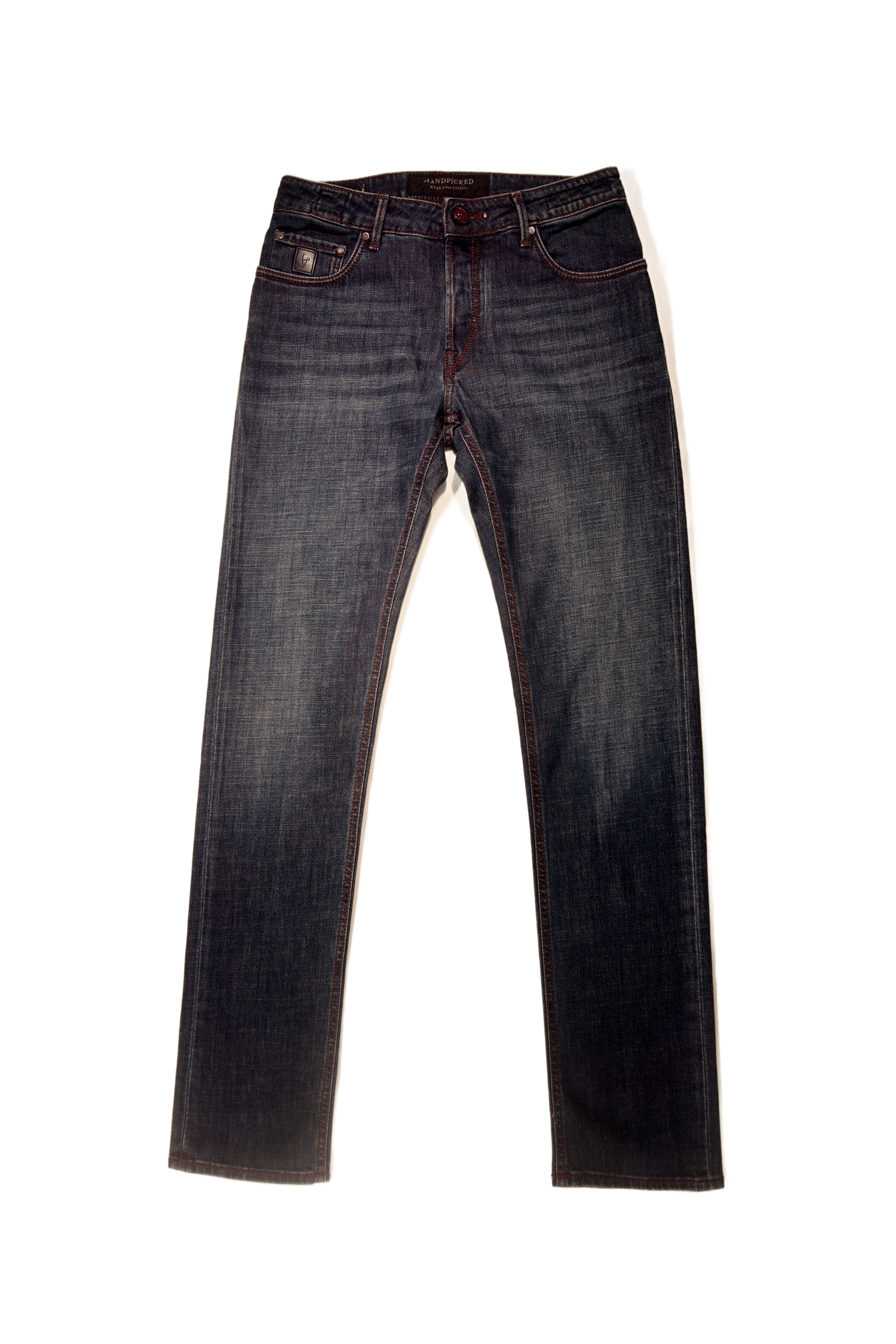 Et par jeans med en rolig selvsikkerhet – mørk mellomblå vask med detaljer i søm og knepping gir et elegant uttrykk, mens italiensk håndverk sørger for komfort og slitestyrke.