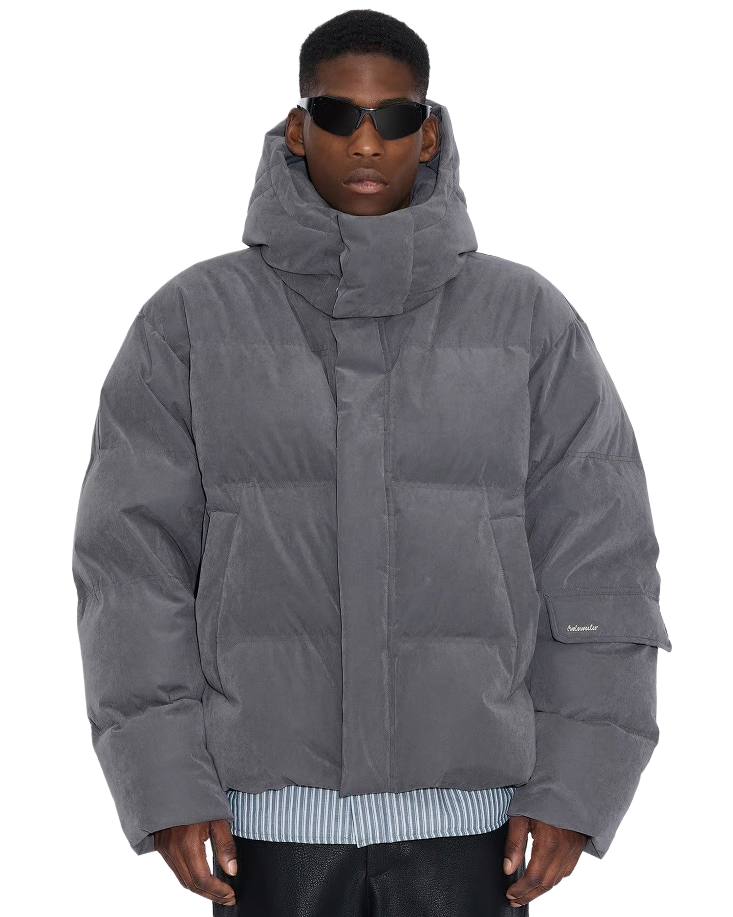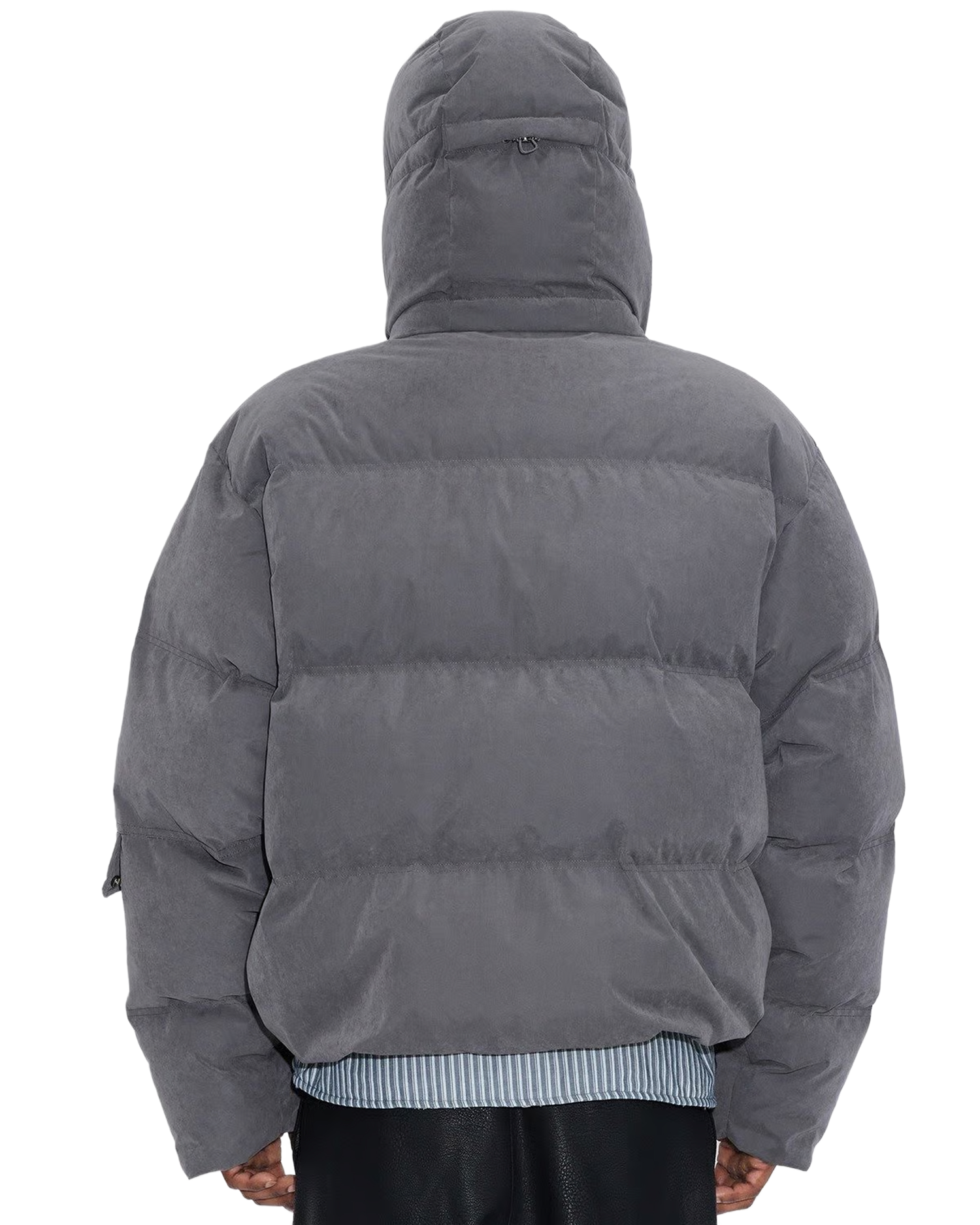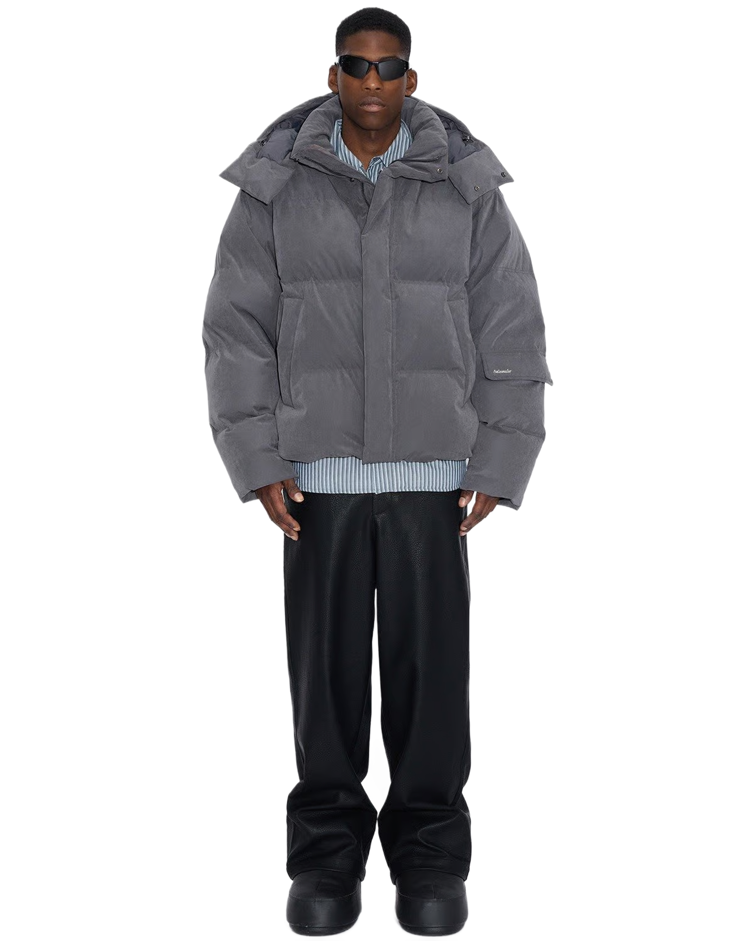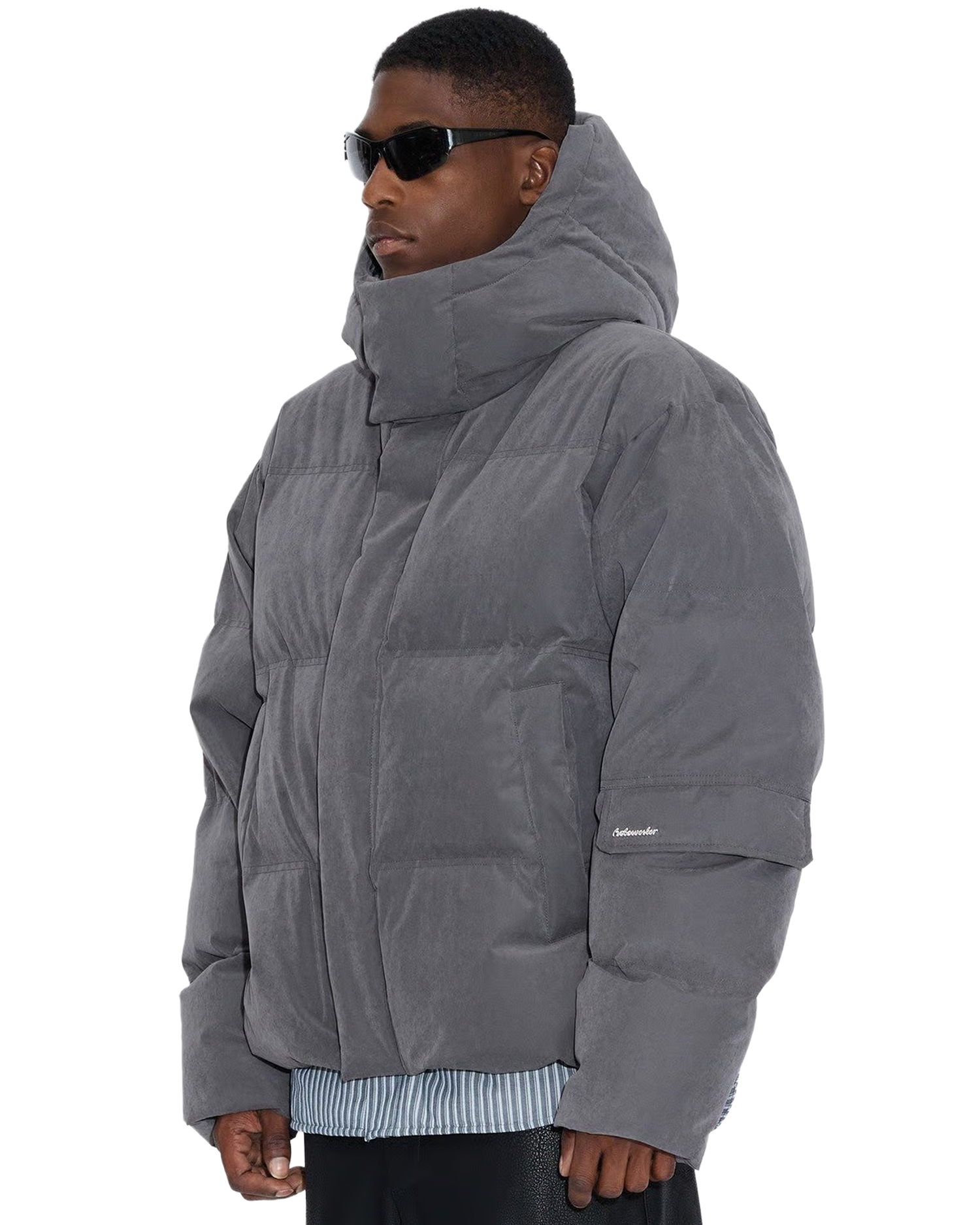 Holzweiler Narvik Brushed Down Jacket i grå er en kort dunjakke med hette, laget i en børstet kvalitet som gir et mykere uttrykk. Jakken har en løs, omsluttende passform og kort lengde som gjør den lett å style både til hverdags og mer aktive dager. Et funksjonelt plagg som kombinerer varme, komfort og moderne skandinavisk design.