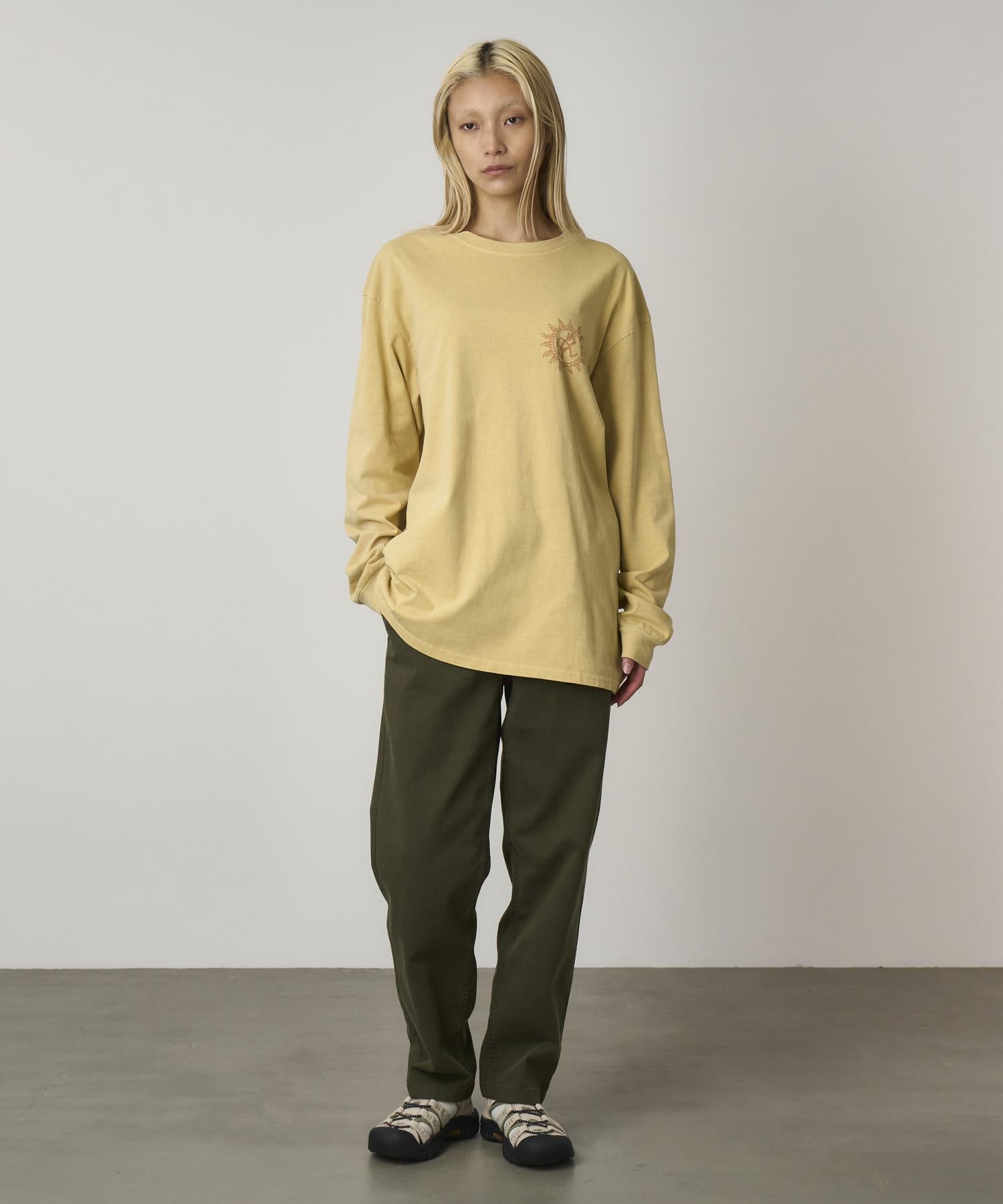 Gramicci Sun L/S Tee i fargen Mustard Pigment er en langermet t-skjorte med økologisk bomull og en litt vintage pigment-vask. Perfekt balanse mellom komfort og stil – fungerer like godt med shorts på varme dager som under jakke når temperaturen faller.