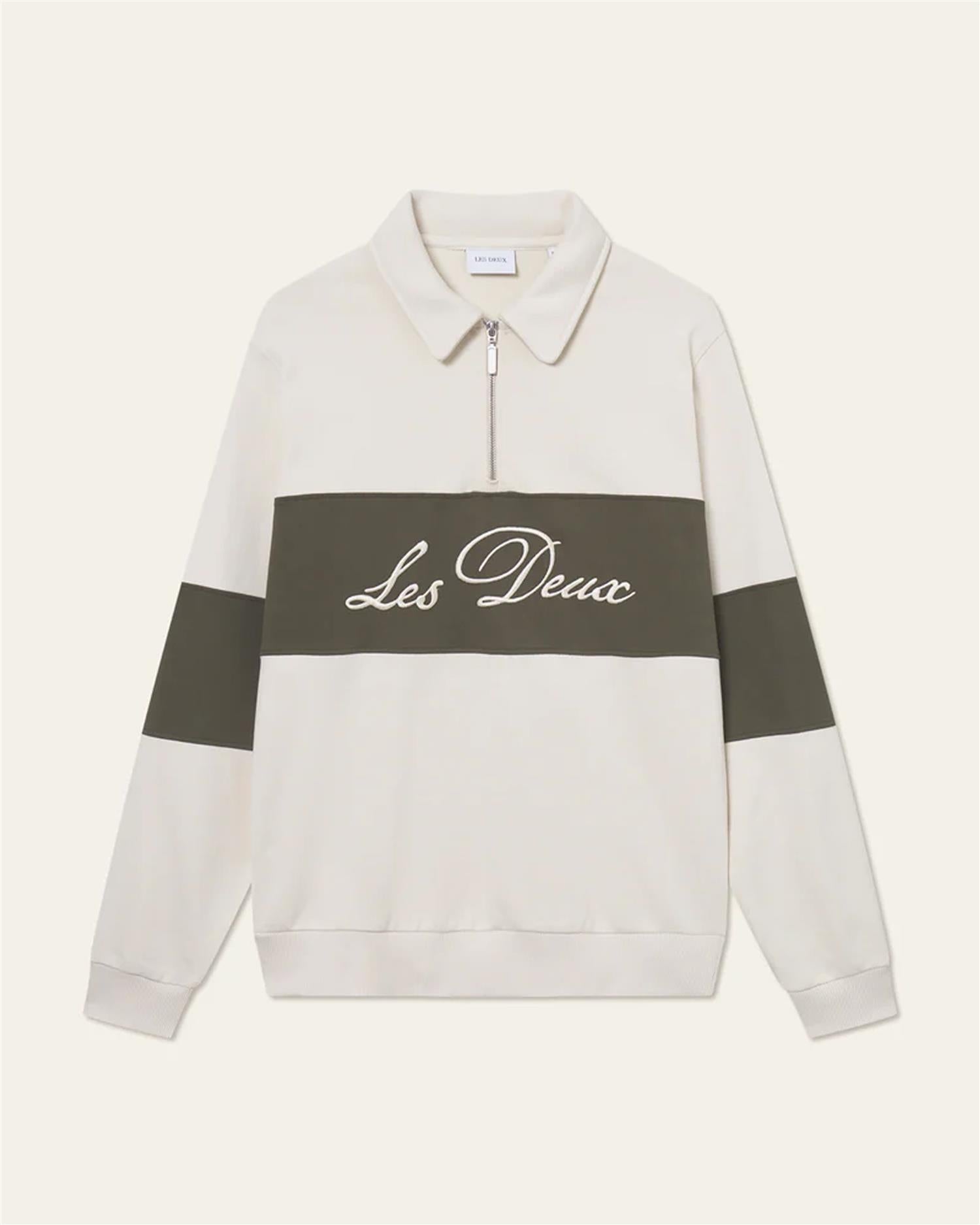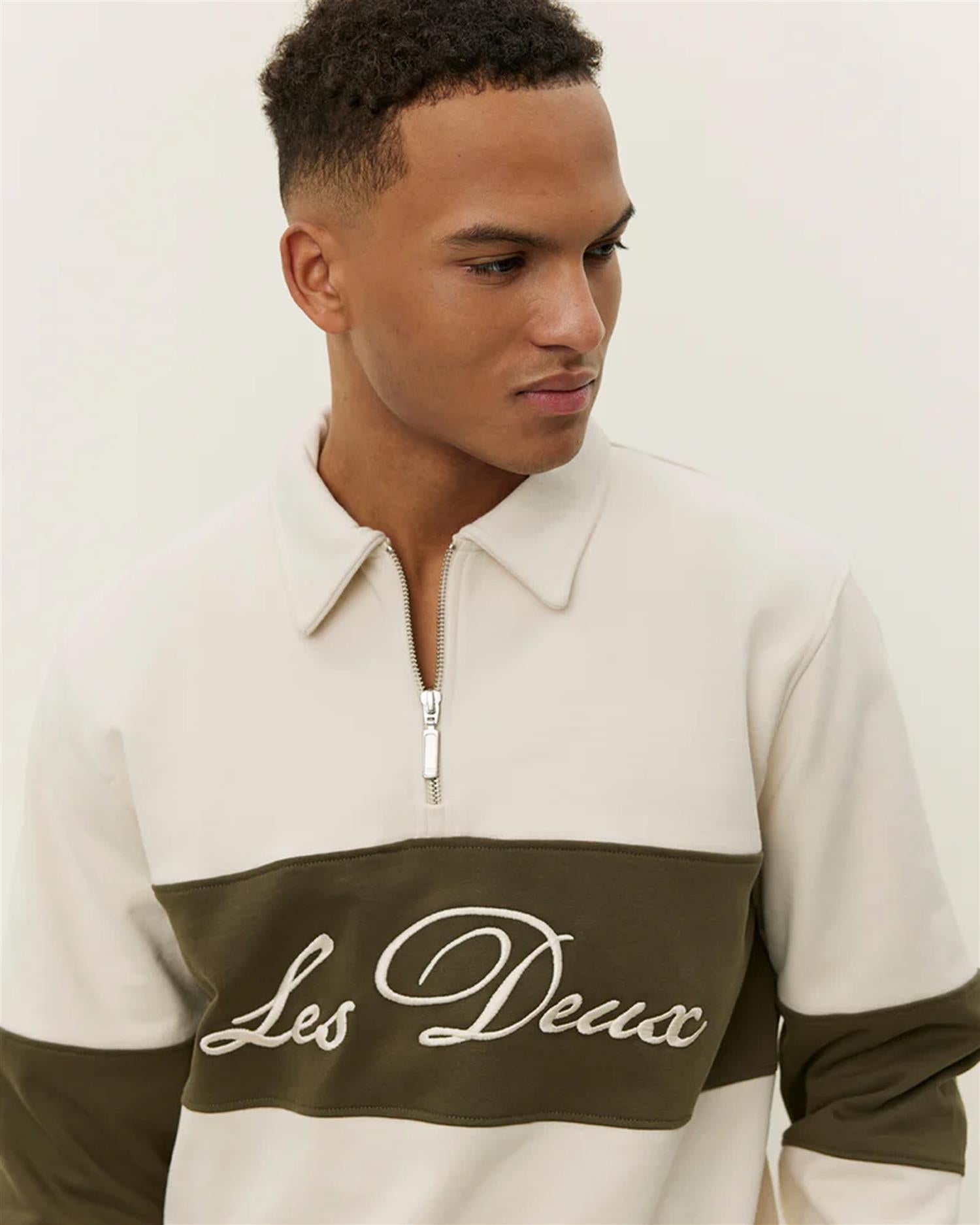 Les Deux Cory Zipper Rugby Sweatshirt kombinerer klassisk rugbyestetikk med moderne detaljer. Med sin halvglidelås og kontrastfargede paneler i mørk marineblå og lys ørkensand, tilbyr denne genseren en tidløs stil med et sporty preg. Det broderte “Les Deux”-logoen foran gir et raffinert uttrykk, mens den myke bomullskvaliteten sikrer komfort gjennom hele dagen.