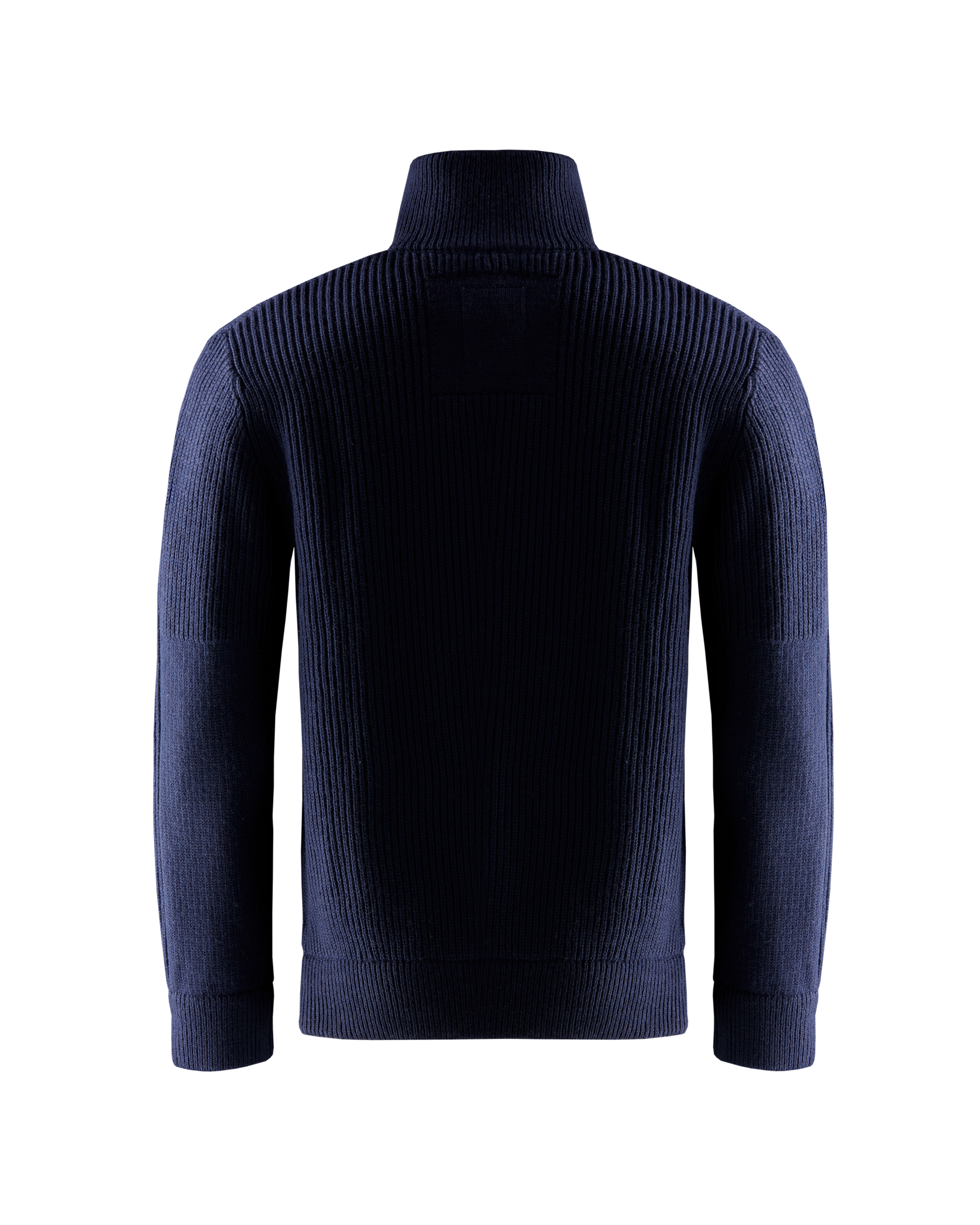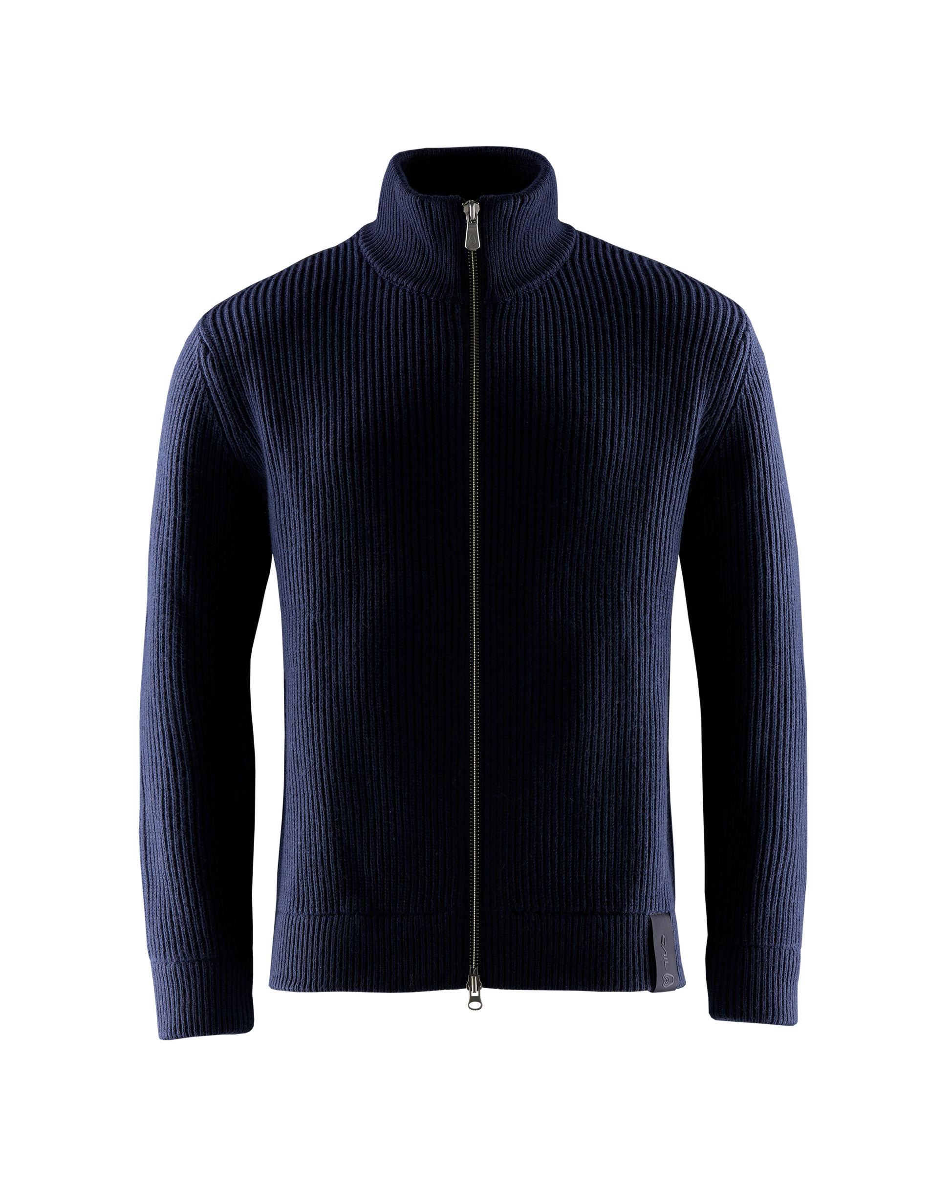Sail Racing Ridge Knitted Jacket er en solid ribbestrikket zip-cardigan i myk ull, laget for varme og komfort med det maritime i bunnen. Den høye kragen og tykke materialkonstruksjonen gjør den perfekt som mellomplagg eller ytterlag på kjølige dager.