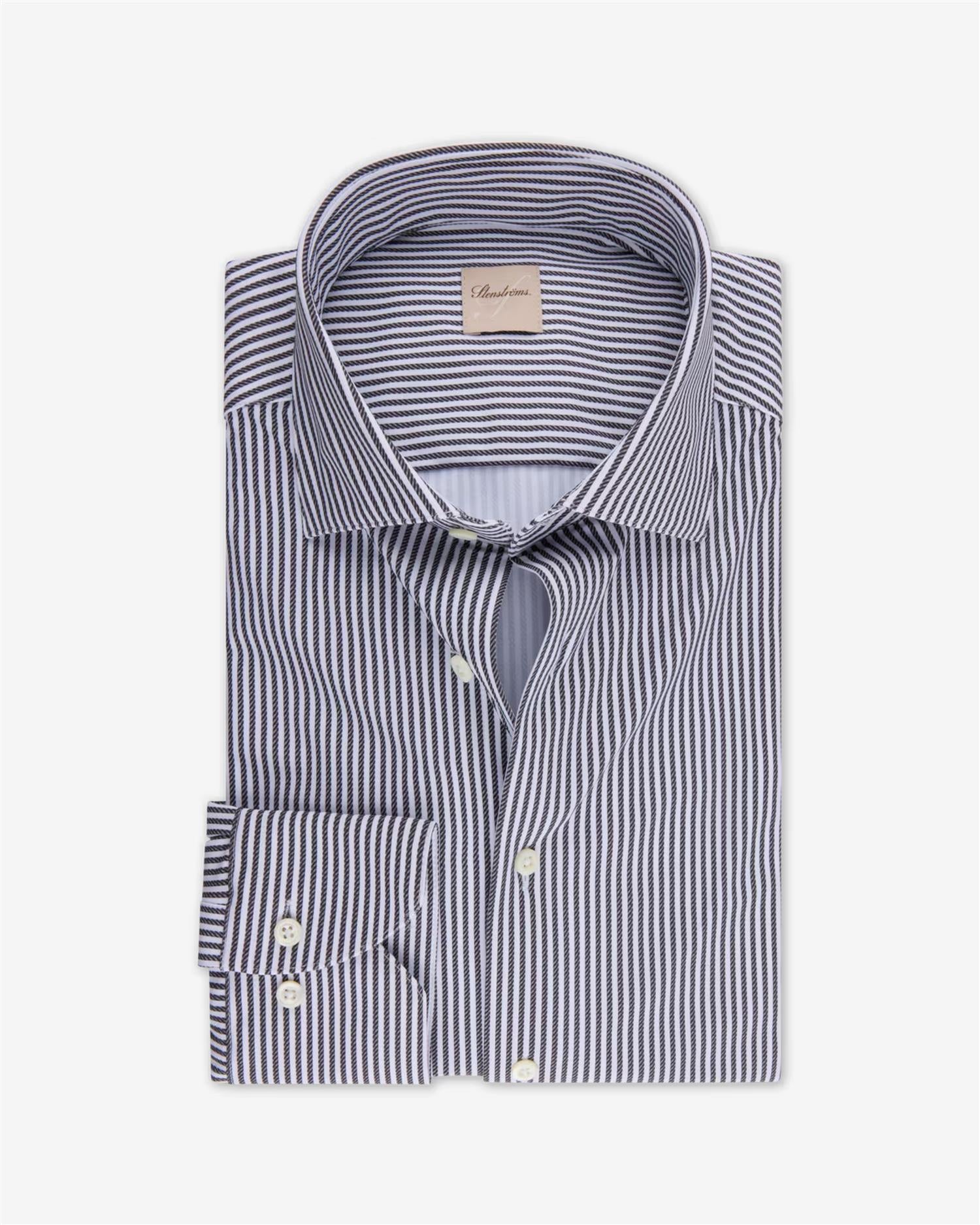 Stenströms Slimline Black Striped Jersey Shirt kombinerer behagelig jersey-stretch og en elegant stripe—den perfekte balansen mellom casual komfort og skarp finish. Med Cutaway-krage og marine/hvit striping løfter den opp både formelle og uformelle antrekk.