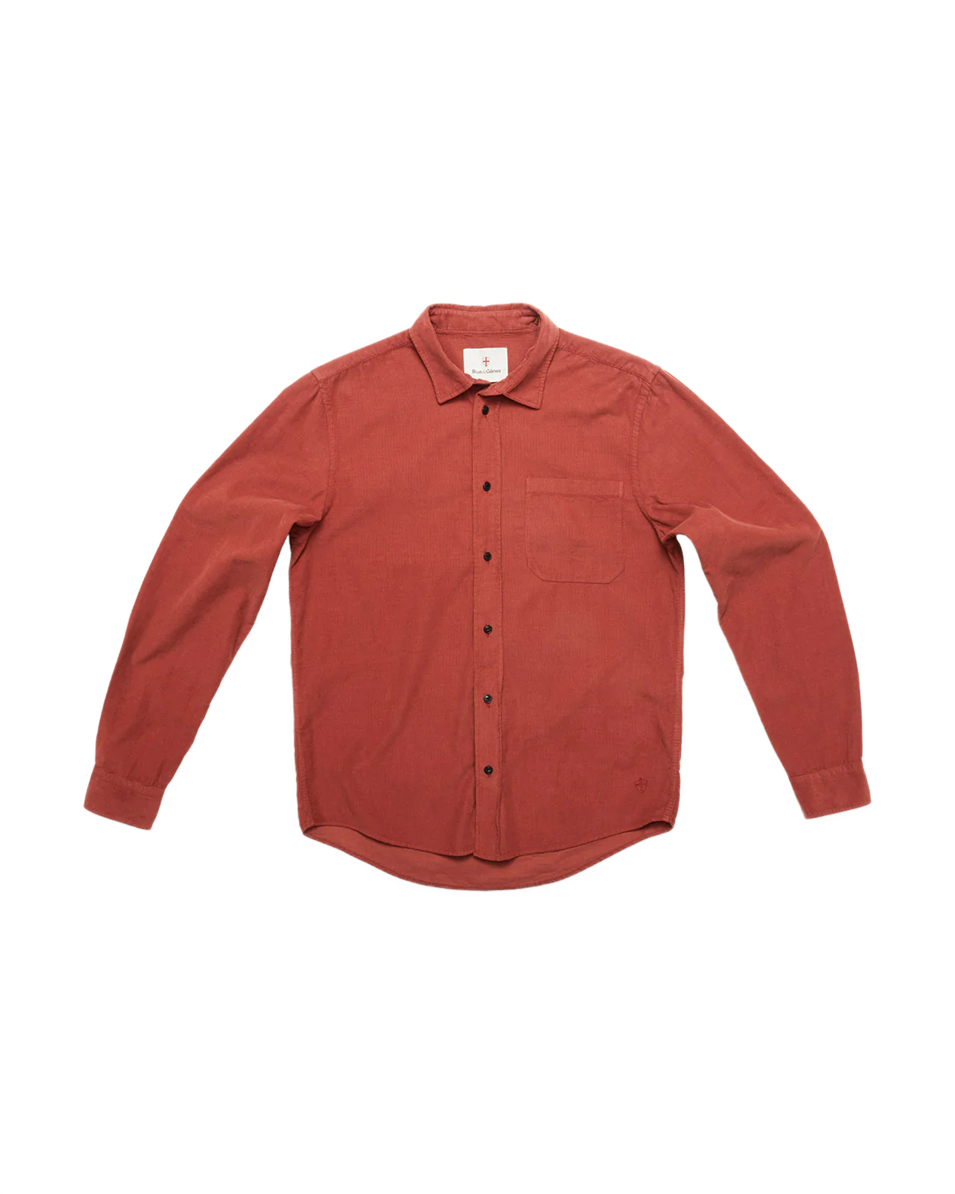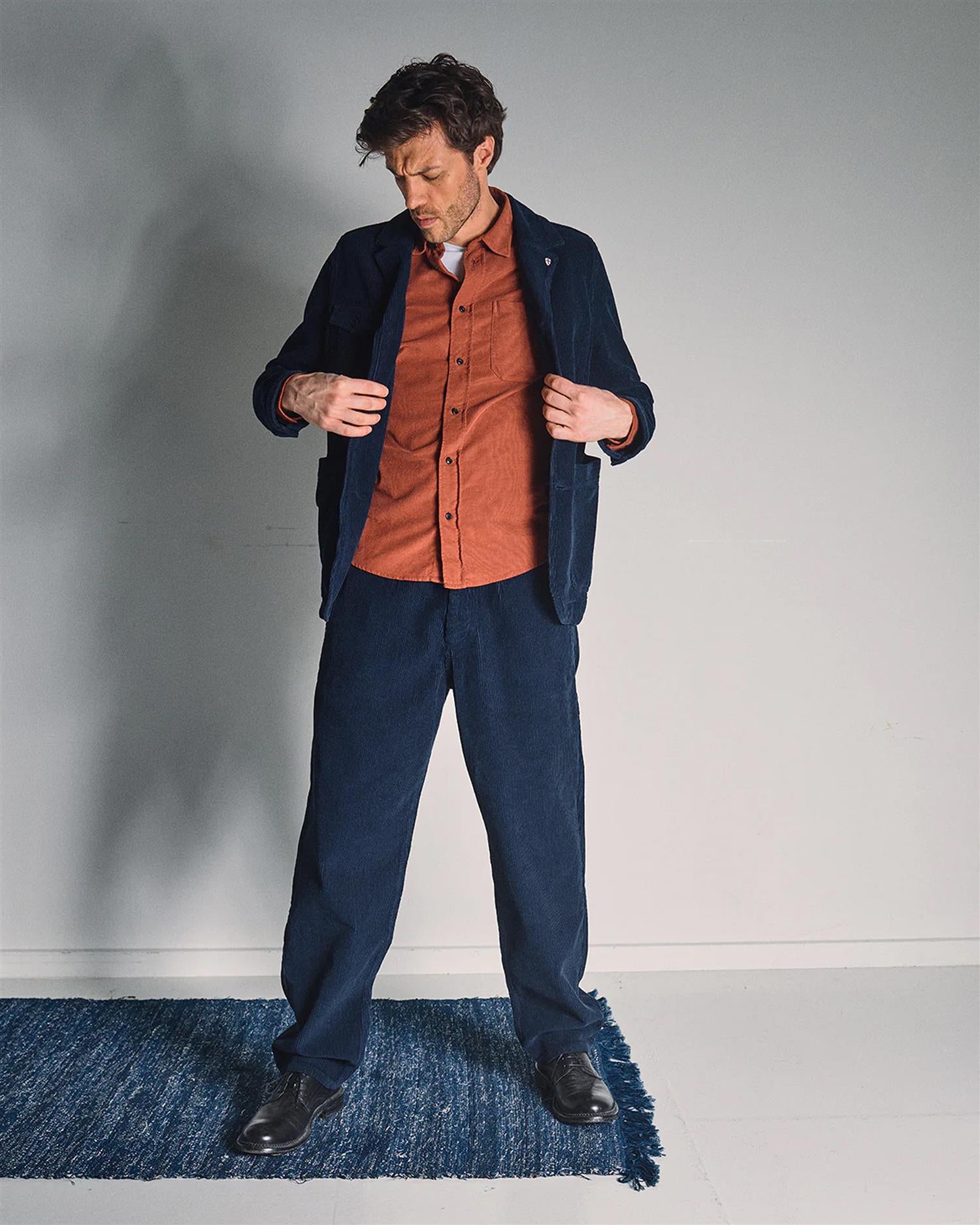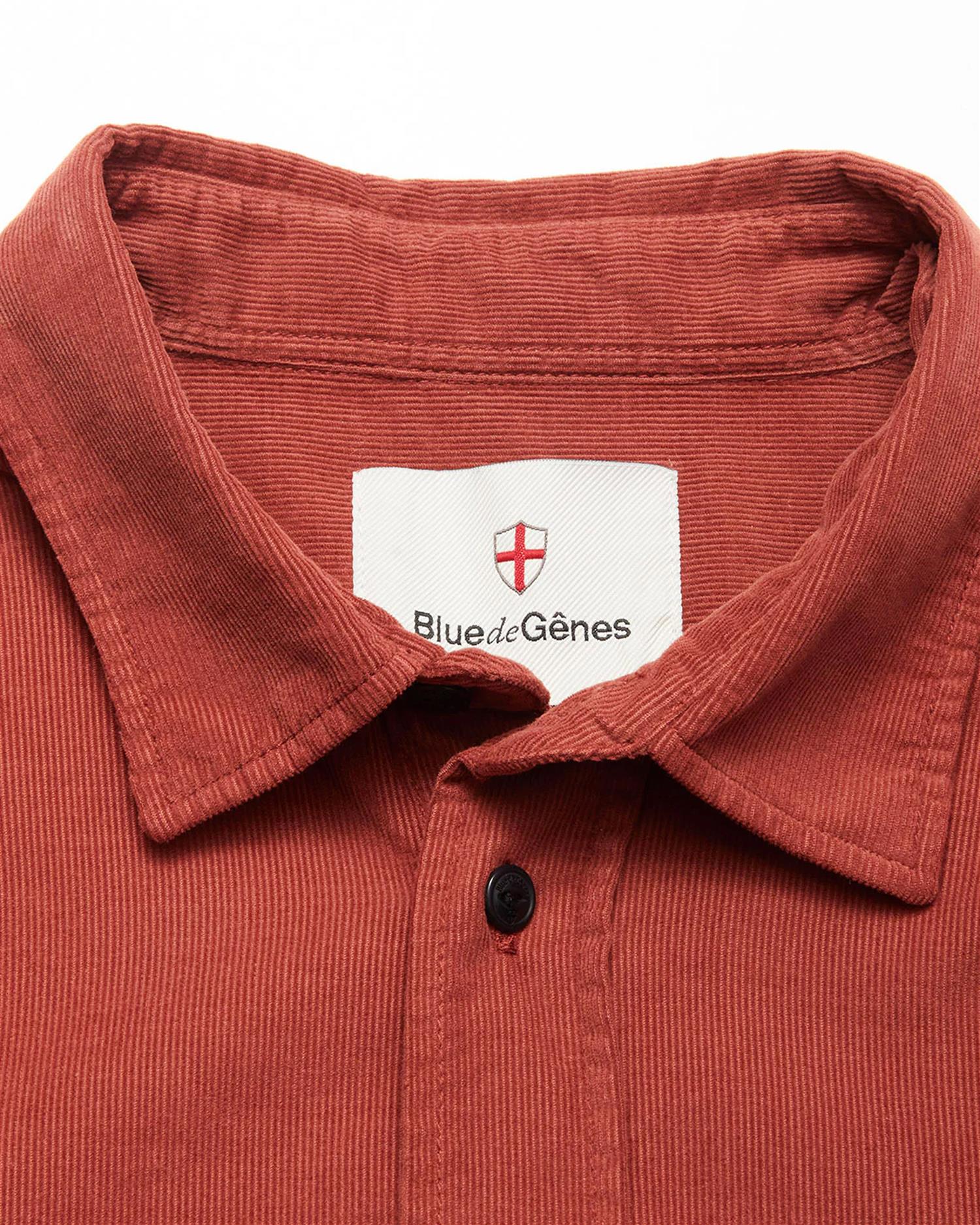 Zamboni Velu Shirt fra Blue de Gênes er en skjorte i baby-kord med i en rik farge og livlig tekstur. Med detaljer som corozo-knapper og får den et røft, men raffinert uttrykk – perfekt for lag-på-lag med grove strikker eller som standalone statement.