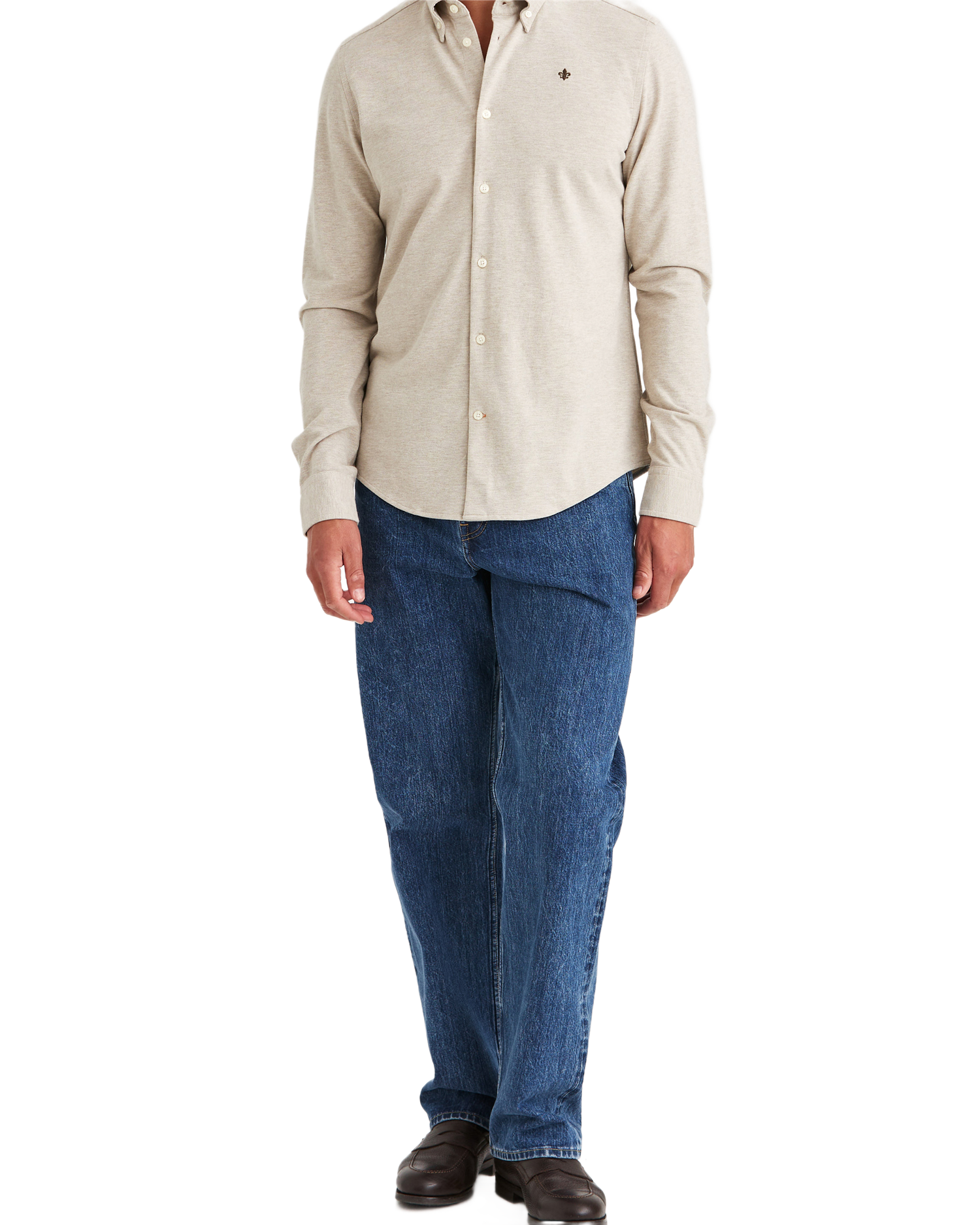 • Klassisk button-down-krage og brodert Morris-lilje på brystet