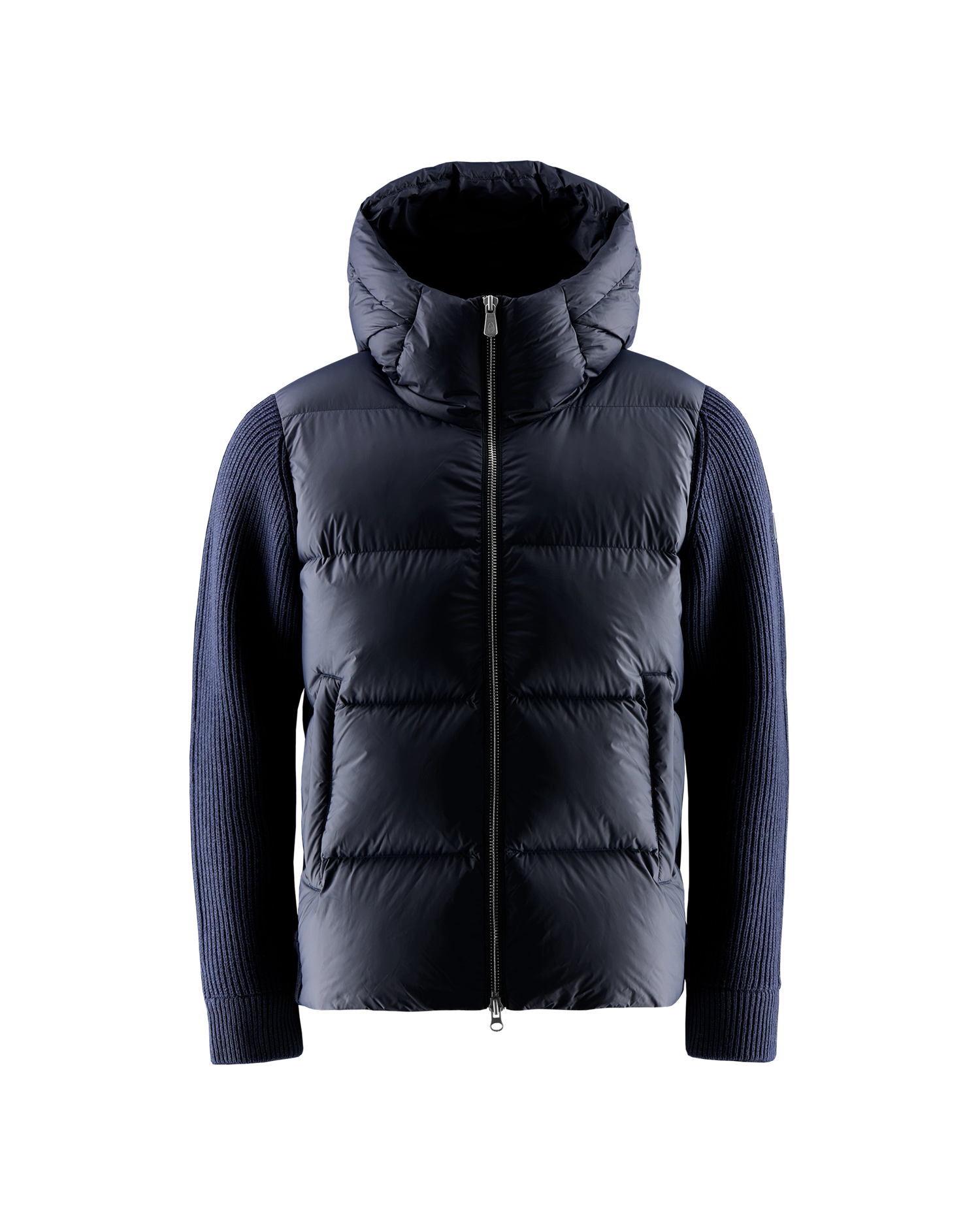 Sail Racing Ridge Knitted Hybrid kombinerer det beste av to verdener: myke, ribbestrikkede ullærmer og rygg, med dunisolert front og hette. En hybridjakke utviklet for å levere både komfort og varme — ideell som et fleksibelt ytterlag i mellomvær.