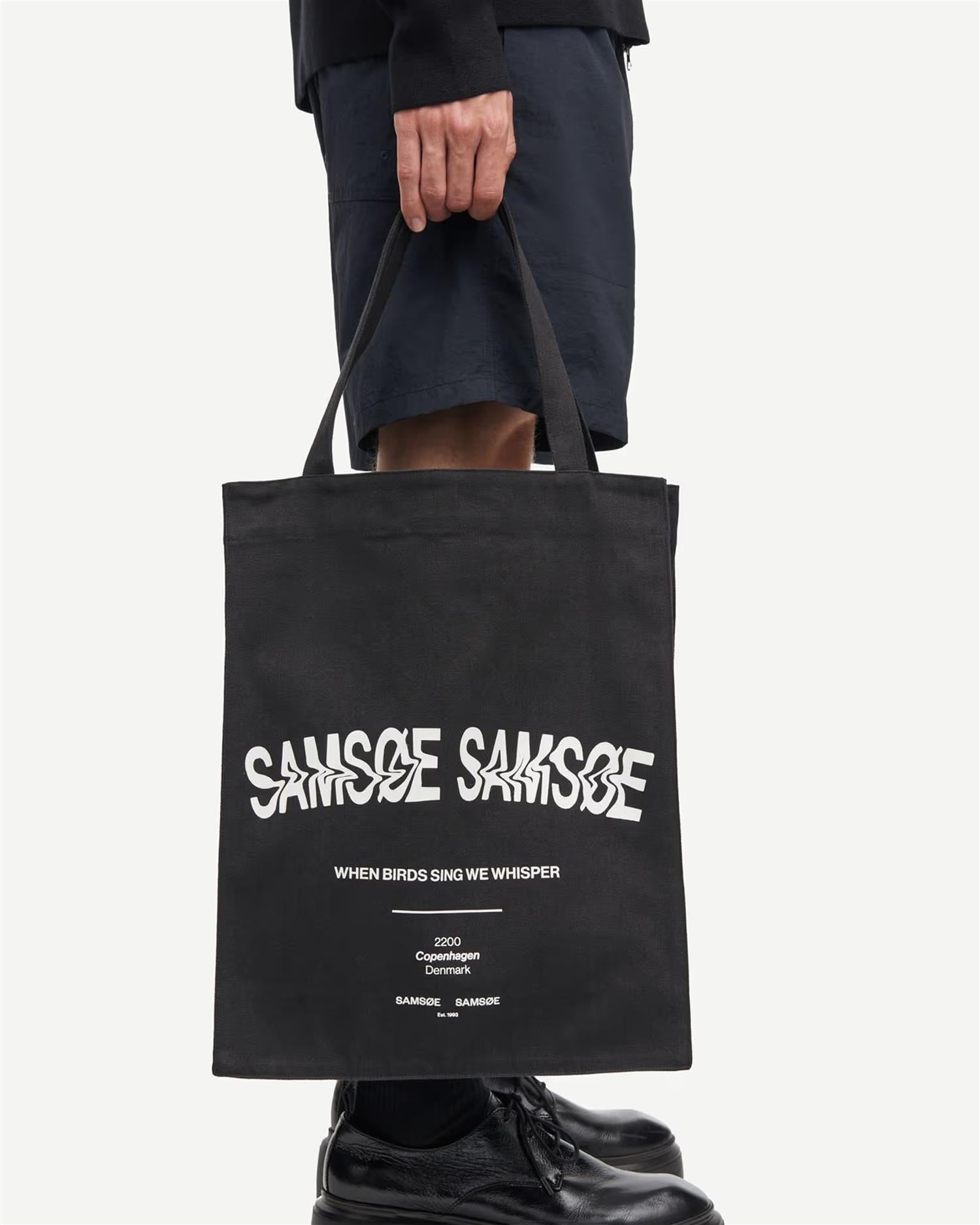 Samsøe Samsøe Saprint Tote Bag 14197 – Washed Black Birds er en romslig og bærekraftig tote bag laget av 100 % resirkulert bomull. Den har et kunstnerisk fugletrykk foran og på baklommen, samt sølvfargede detaljer som gir et moderne preg. Med sine praktiske mål og slitesterke materiale er den ideell for daglig bruk.