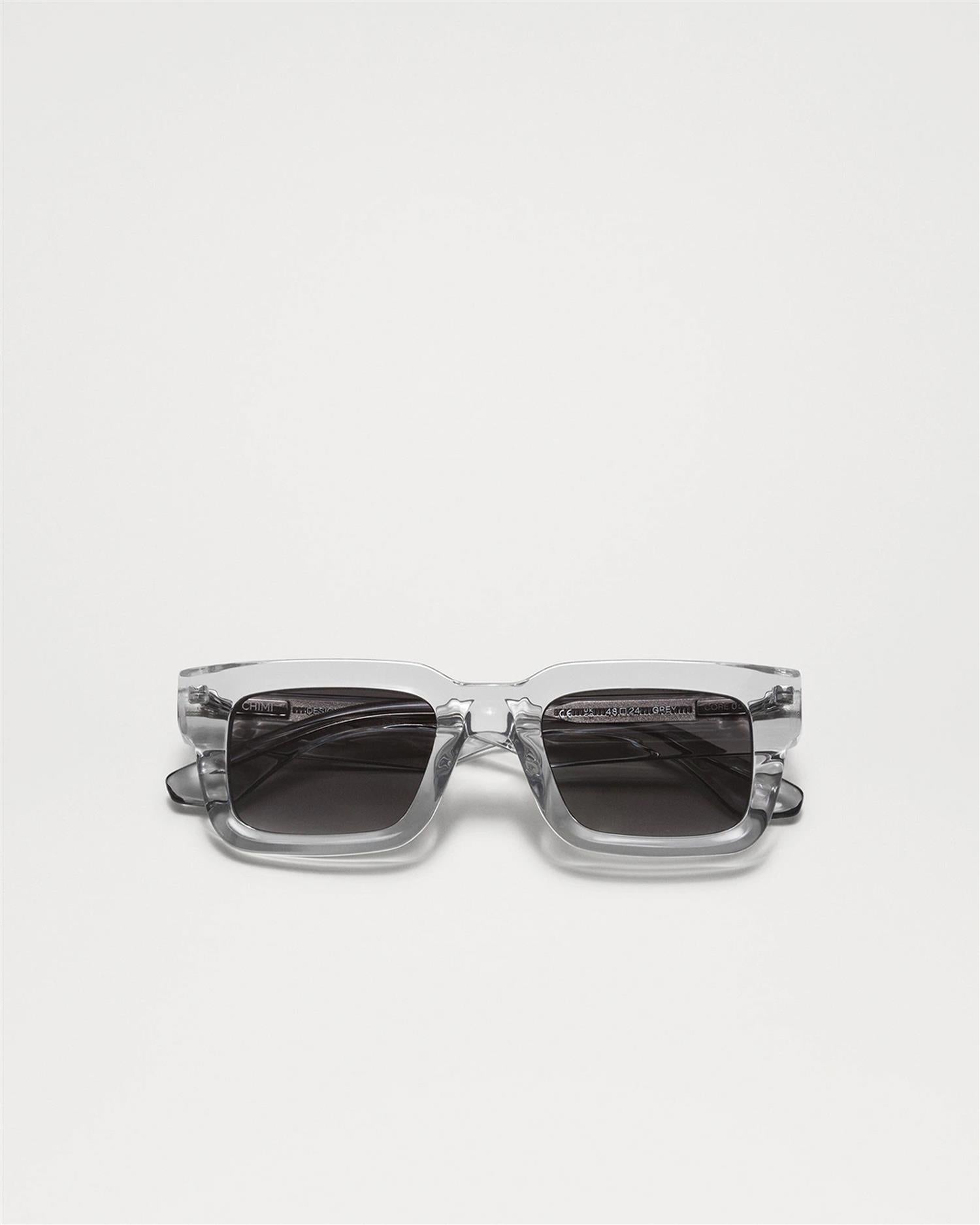 Chimi 05 har en tydelig kvadratisk form med skarpe linjer og minimalistisk design. Den gir et arkitektonisk uttrykk med markerte bevel-detaljer i tempelområdet, og rammer inn ansiktet med både presisjon og tilstedeværelse, uten å gå på kompromiss med komfort