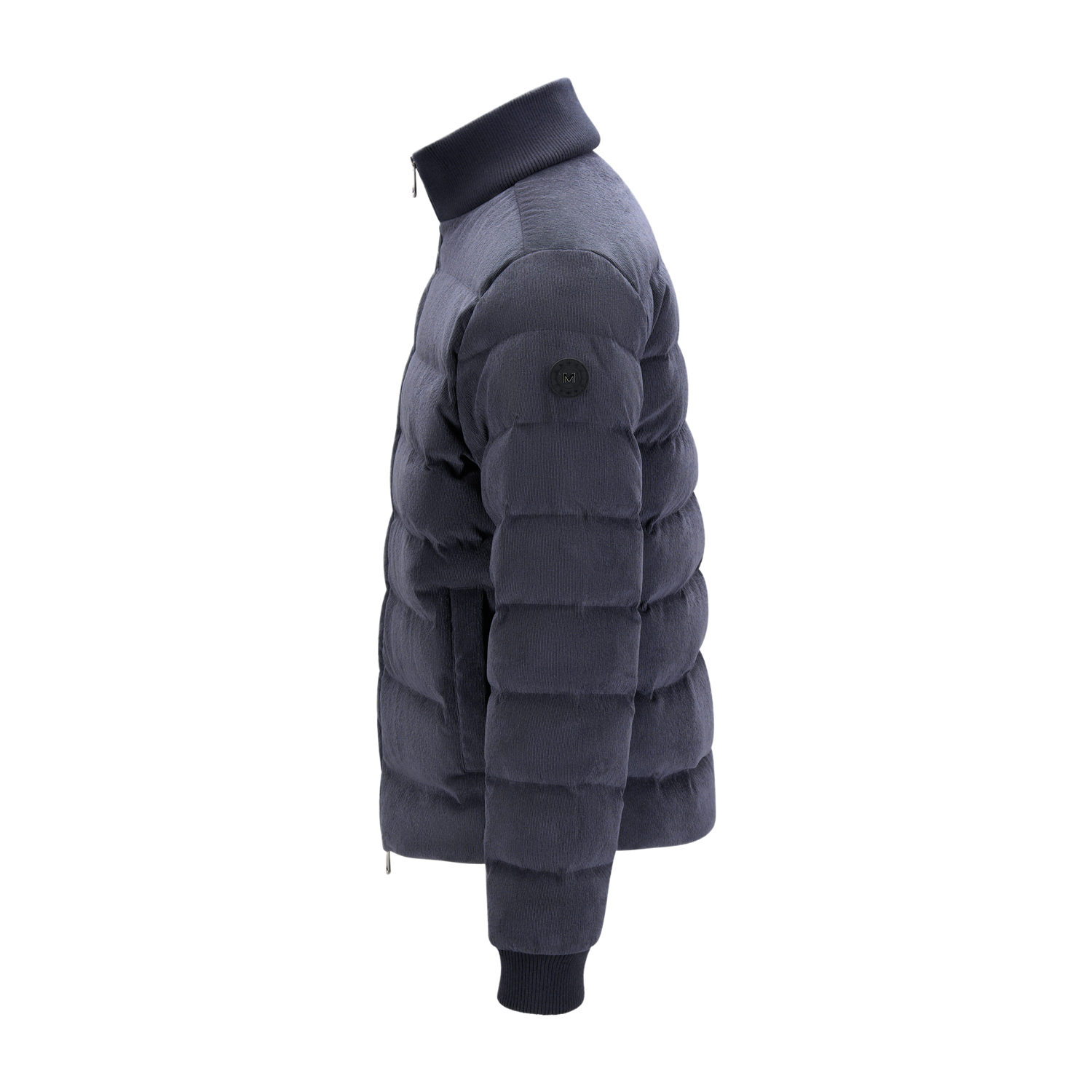 Monel Jacob i Midnight Navy kombinerer elegant cordfløyel og dunisolasjon for en moderne bomberjakke med stil og varme. Perfekt for urbane dager når du ønsker komfort uten å gå på kompromiss med utseende.