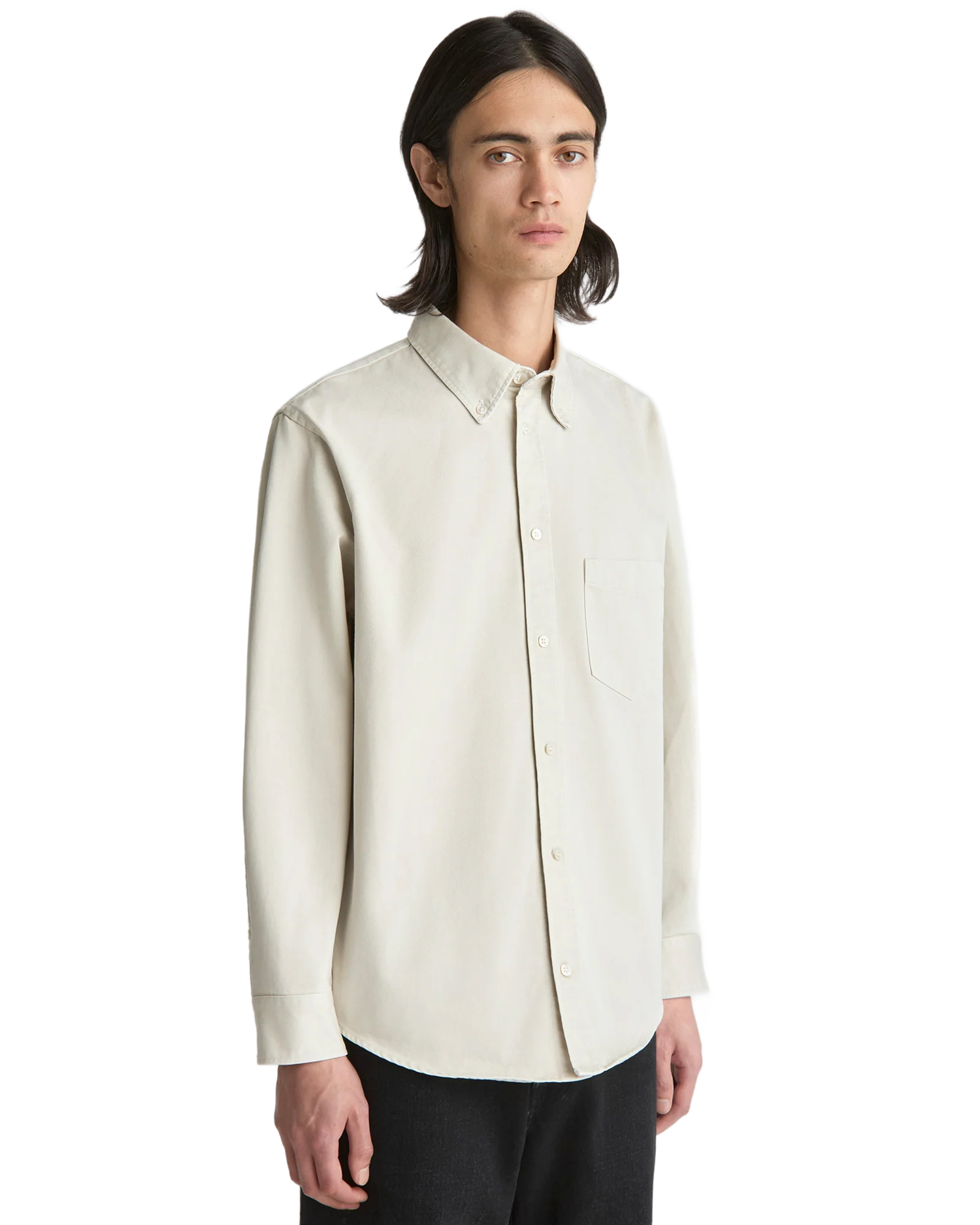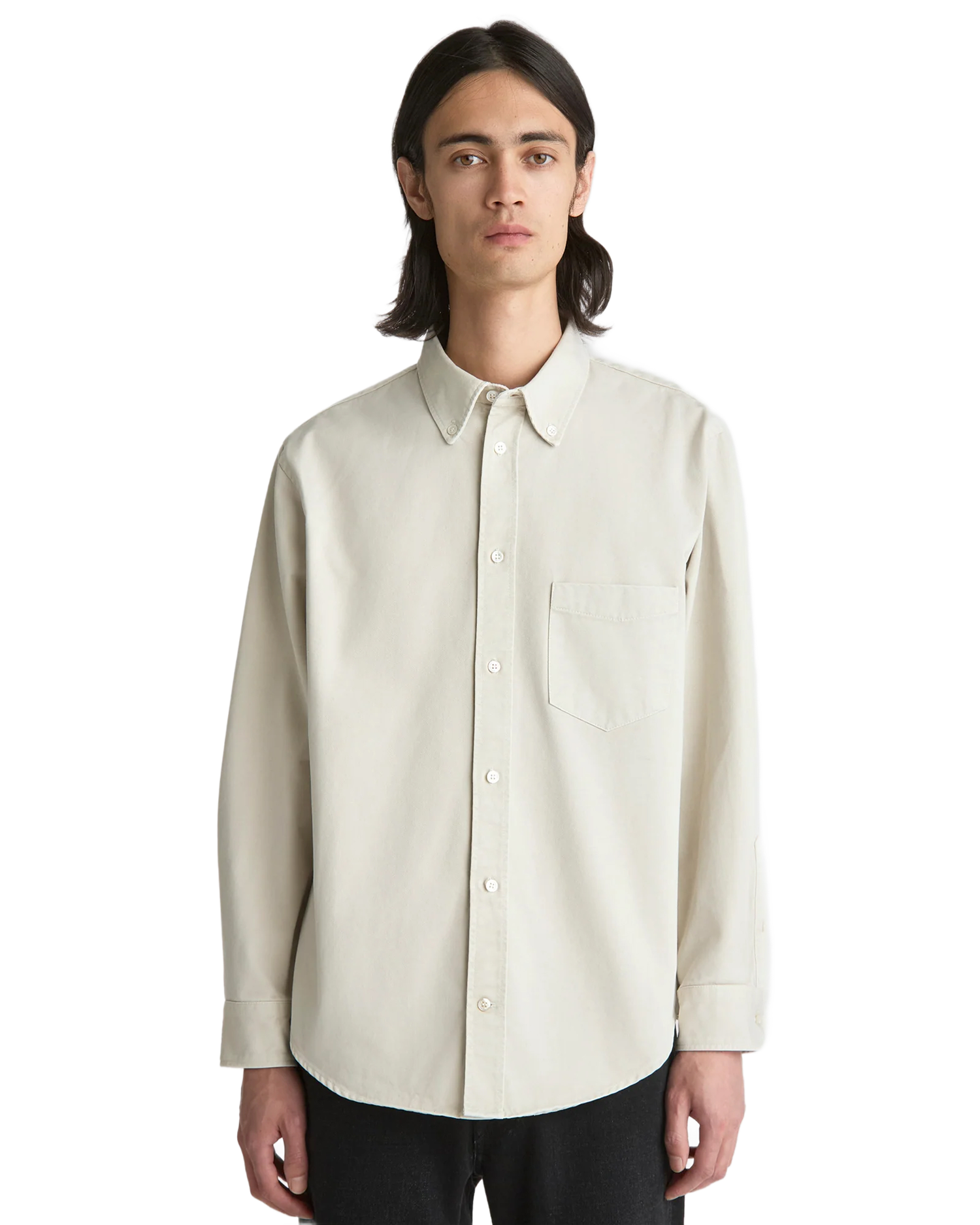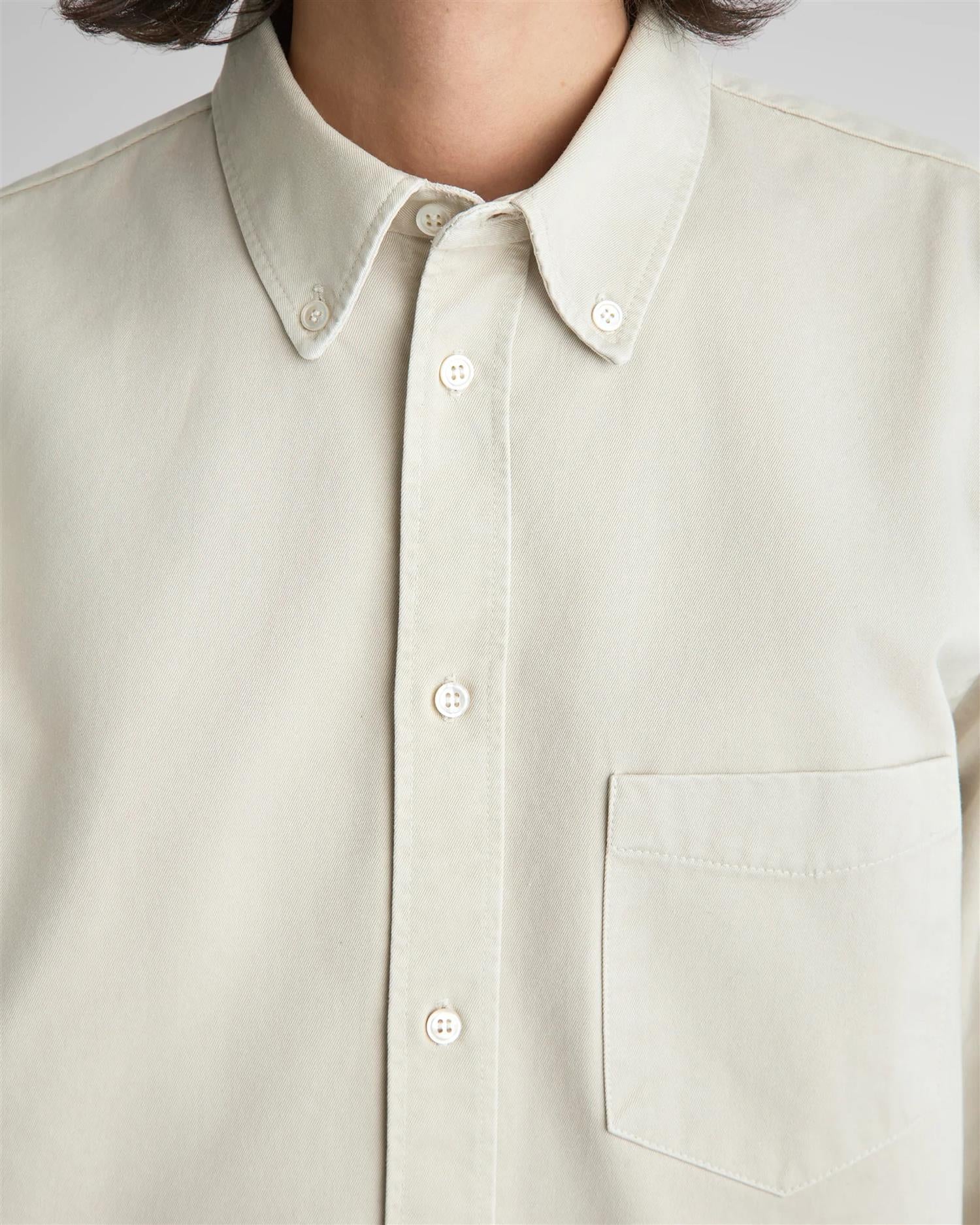 • Regular fit overshirt-stil med skjortekrage, brystlomme, glatt knappestolpe og ekstra knapp på mansjett for tettere ermgivelse.