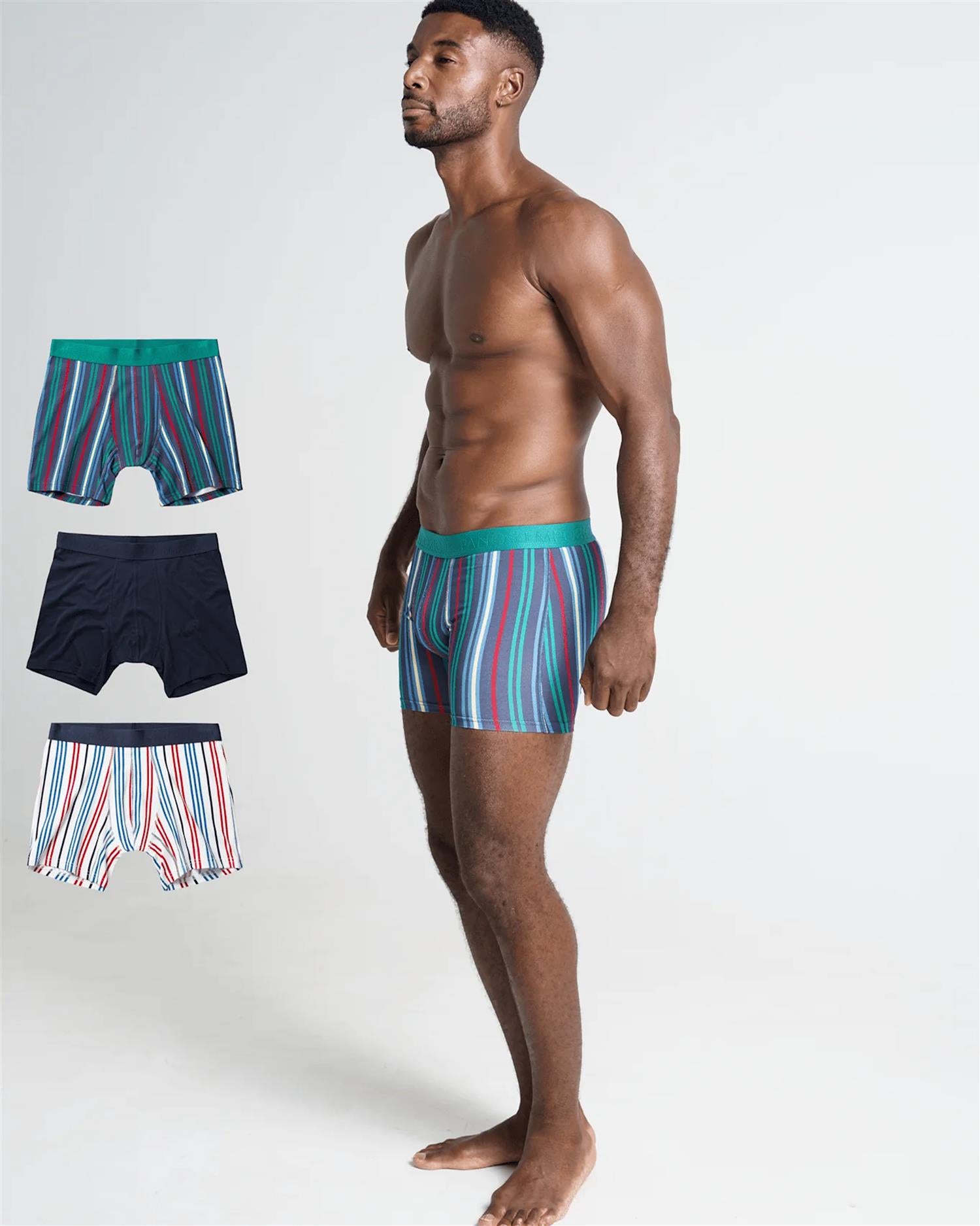 3pk Base Bamoboo Boxer Pinstripe/Poseidon/Navy