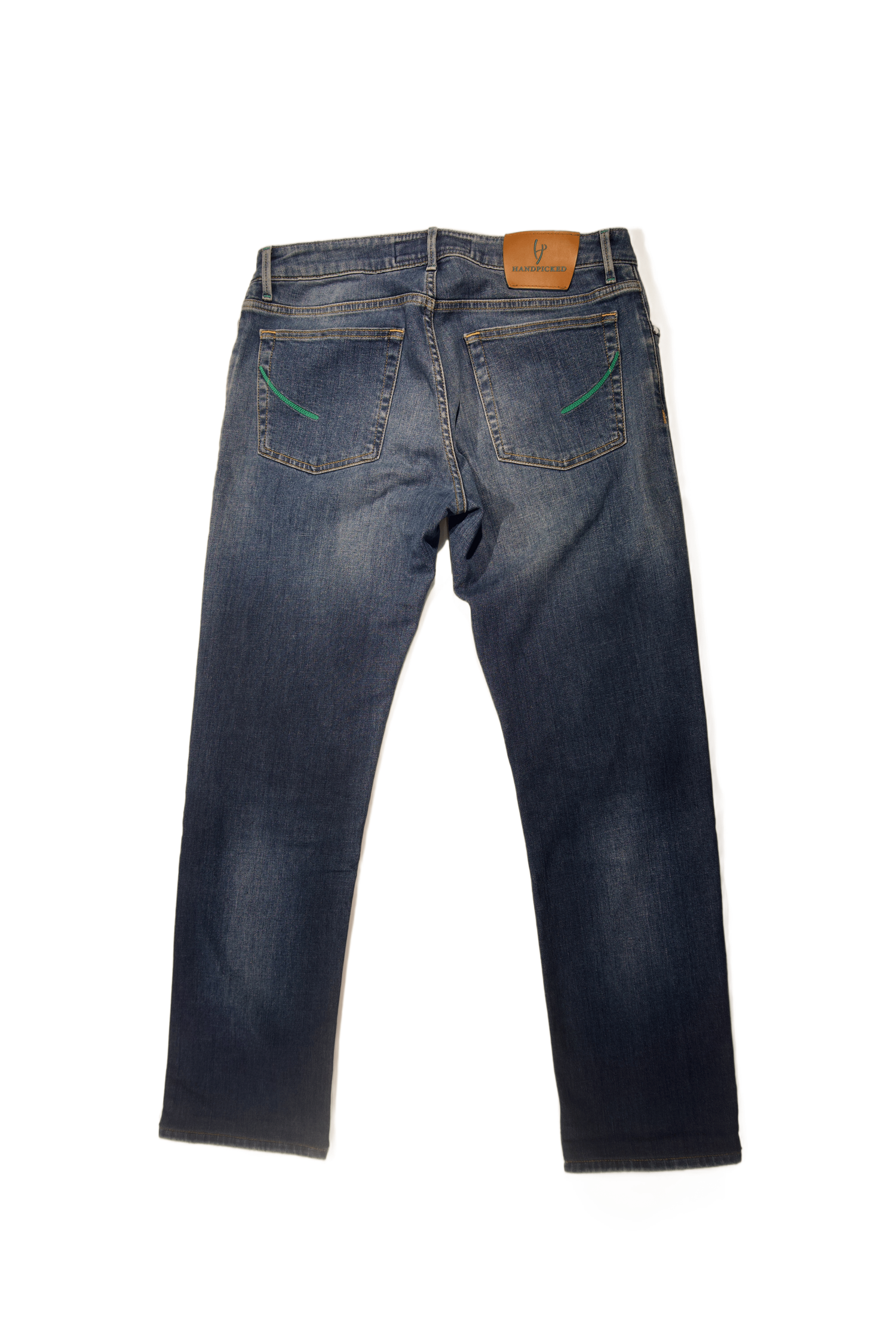 En jeans som balanserer klassisk og moderne: mørk vasket denim med rene linjer og komfortabel passform – ideell for både kontor og fritid.