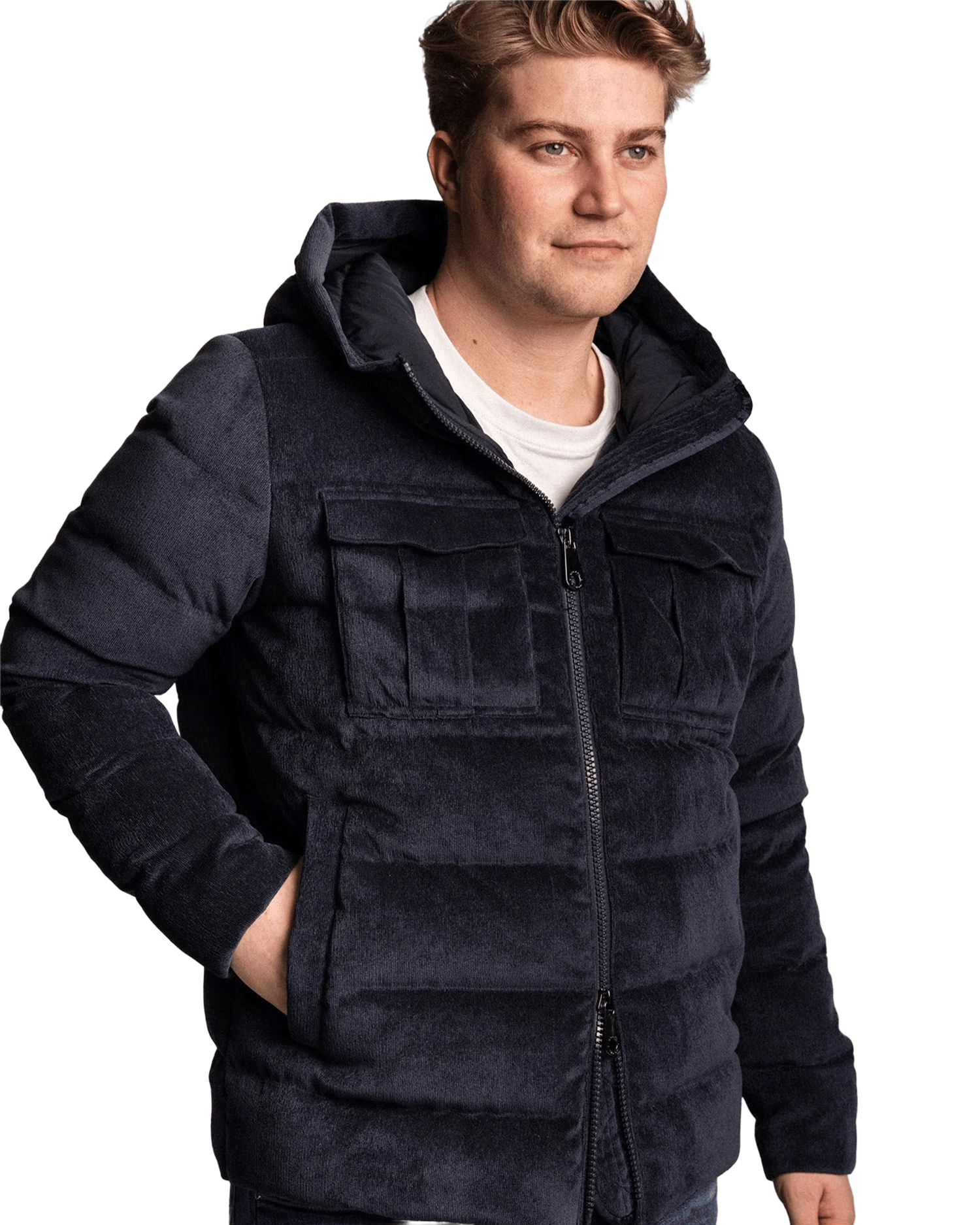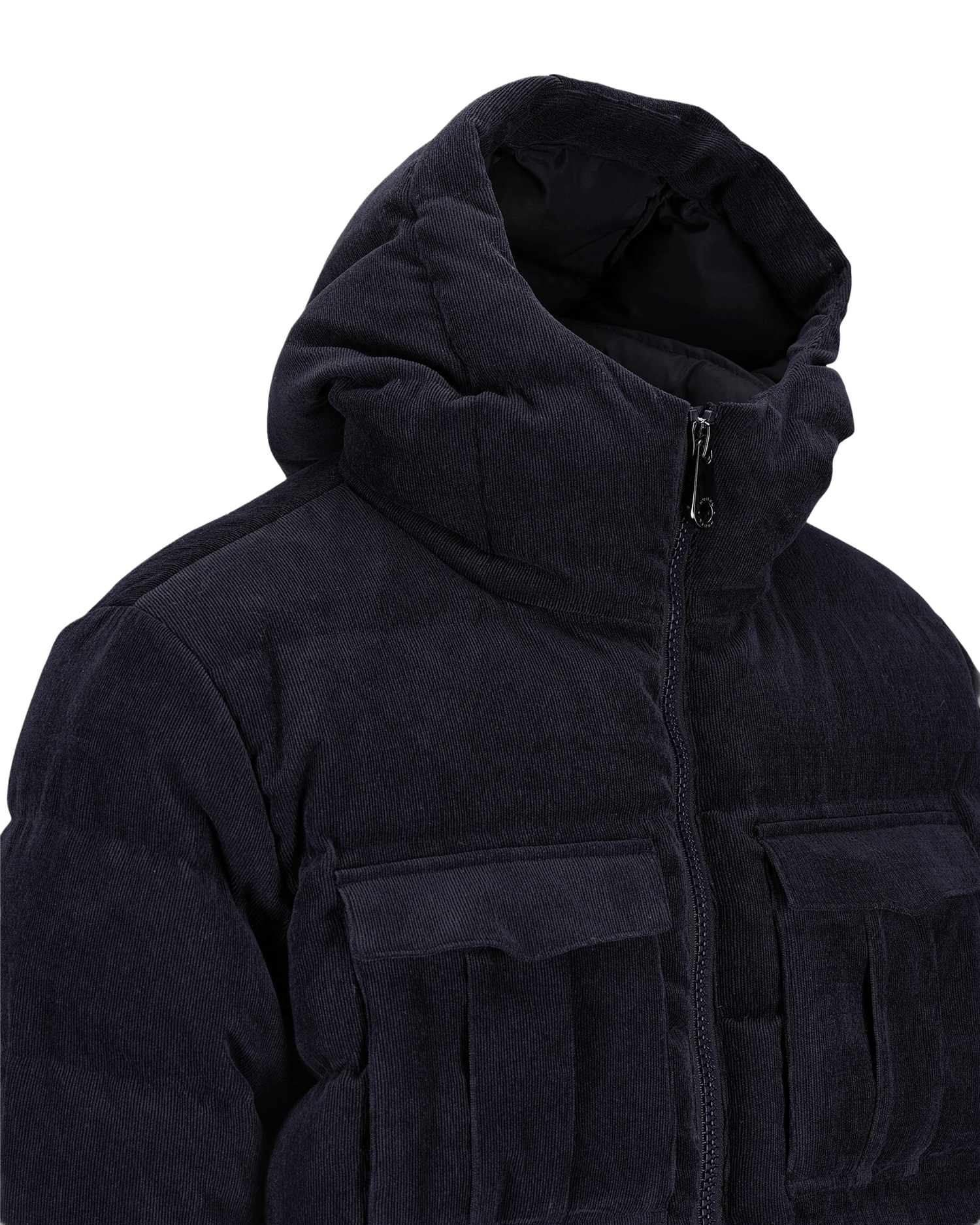 Monel Tignes Jacket kombinerer klassisk cordfløyel med moderne dunisolasjon. En raffinert tolkning av den ikoniske bomberjakken — designet med teknisk fyll, myk overflate og justerbar hette. Like aktuell i urbane omgivelser som på hytta.