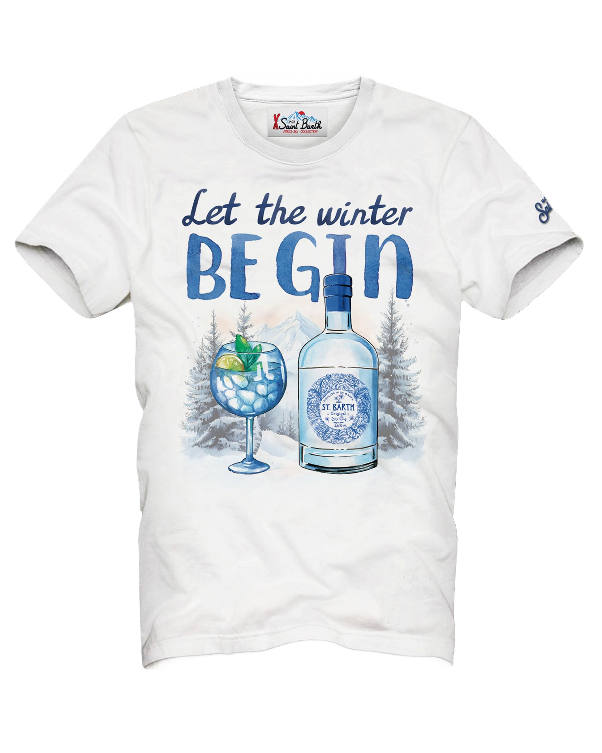 • Grafisk frontprint med ginflaske og glass, samt teksten “Let the winter beGIN”