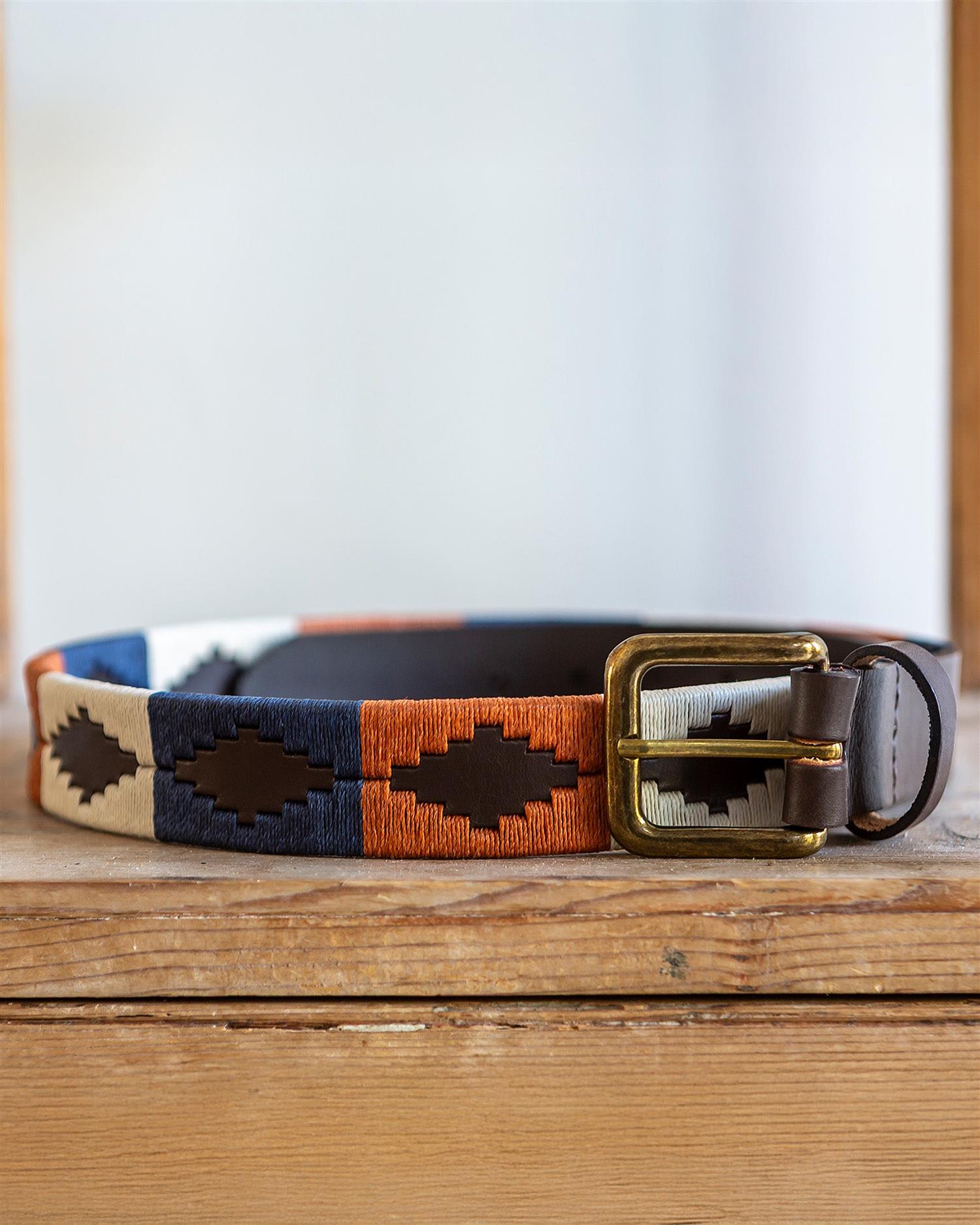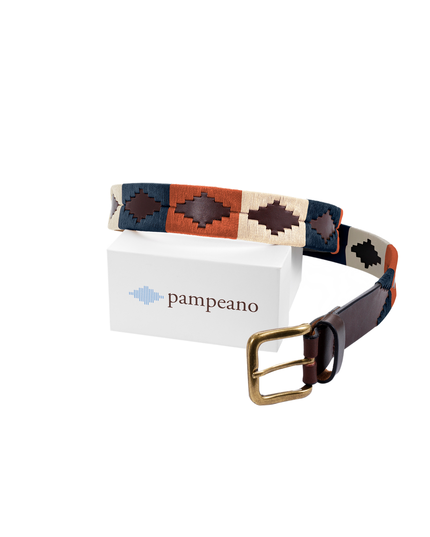 Aurora er et ikonisk polo-belte fra Pampeano, inspirert av fargespillet i soloppgangen over de argentinske slettene. Det tradisjonelle håndsydde mønsteret kombinerer varme og friske toner som gir beltet et tydelig, men balansert uttrykk. Beltet er laget i vegetabilsk garvet kuskinn, håndsydd med vokset tråd etter gamle håndverkstradisjoner. Resultatet er et belte som tåler daglig bruk – og som bare blir bedre med årene.
