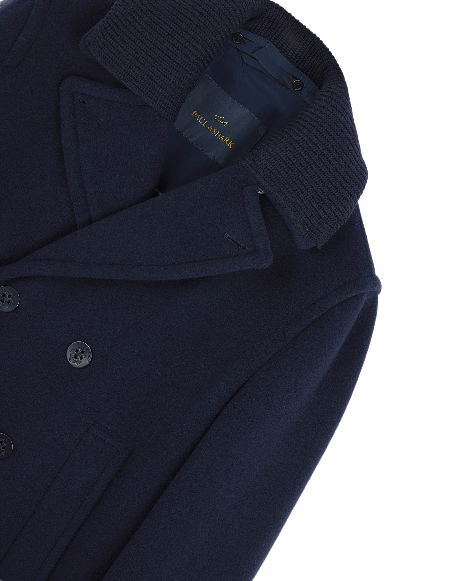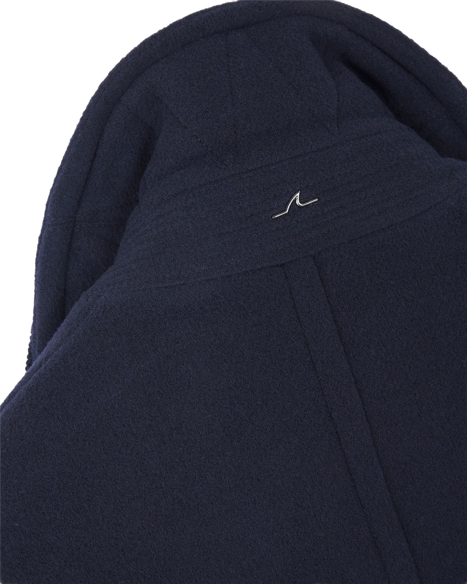 Paul & Shark True Peacoat i ull og kasjmir representerer det ultimate møtet mellom klassisk maritim eleganse og moderne luksus. Denne dobbelspente peacoat-frakken er skreddersydd i en eksklusiv blanding av virgin wool og kasjmir, som sikrer eksepsjonell varme og mykhet gjennom de kaldeste månedene.