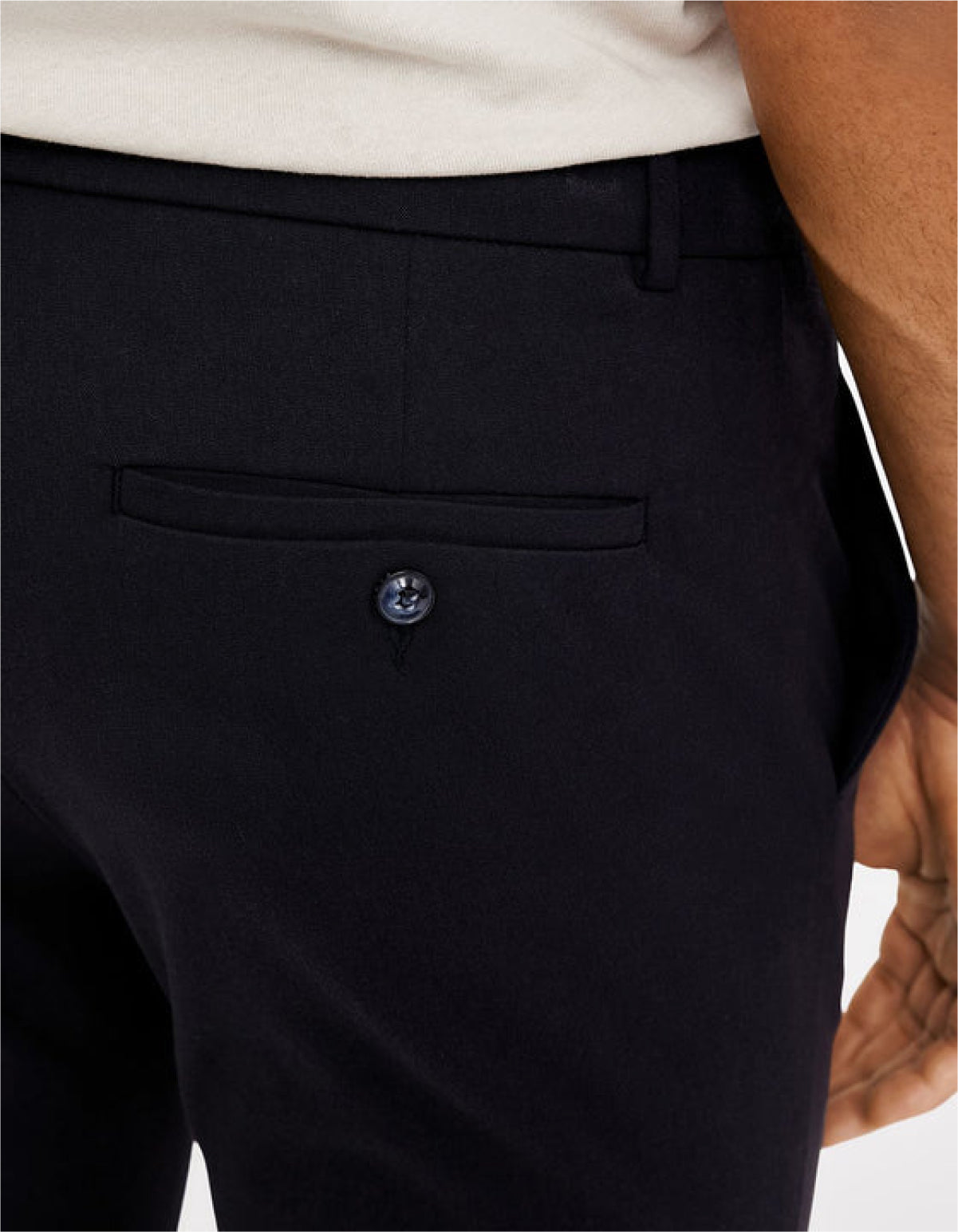 - Front Pocket Detail: The subtle triangle detail adds an extra touch to the style of the trousers.