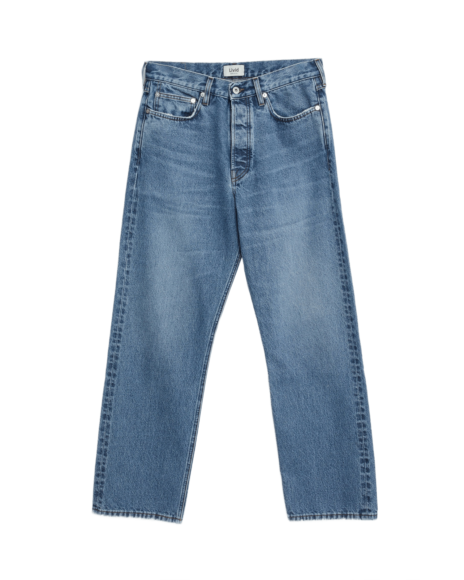 Livid Dune Japan New Blue er en førsteklasses jeans designet for den kvalitetsbevisste. Denne modellen er produsert i Portugal og benytter et solid 13 oz denimstoff fra det anerkjente japanske veveriet Kuroki. Den lyseblå vasken gir jeansen et autentisk, innlevd preg, mens det slitesterke stoffet sikrer langvarig bruk. Detaljer som vegetabilsk garvet lærpatch fra Italia, YKK-knappegylf i sølvfarget metall og solide kobbernagler understreker jeansens høye kvalitet. Med ecru-fargede lommer i 8 oz canvas og sømmer sydd med polyestergarn, kombinerer denne jeansen funksjonalitet med estetikk.