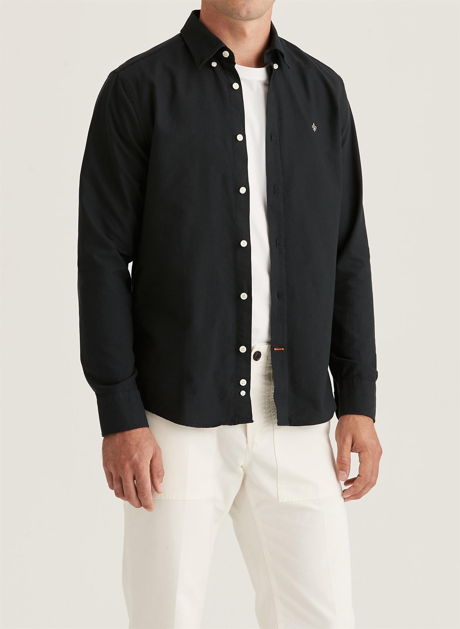 Douglas is Morris' version of the classic Oxford shirt. It is made from an oxford woven fabric and has a button collar. A medium-thick oxford fabric has been chosen - neither too heavy, nor too light. This is a true classic and a must in every man's wardrobe. It can easily be dressed up with a suit jacket and tie, or worn with a knitted sweater for a more relaxed look. Douglas has a slim fit and can be worn inside the trousers or outside, depending on the style you want.