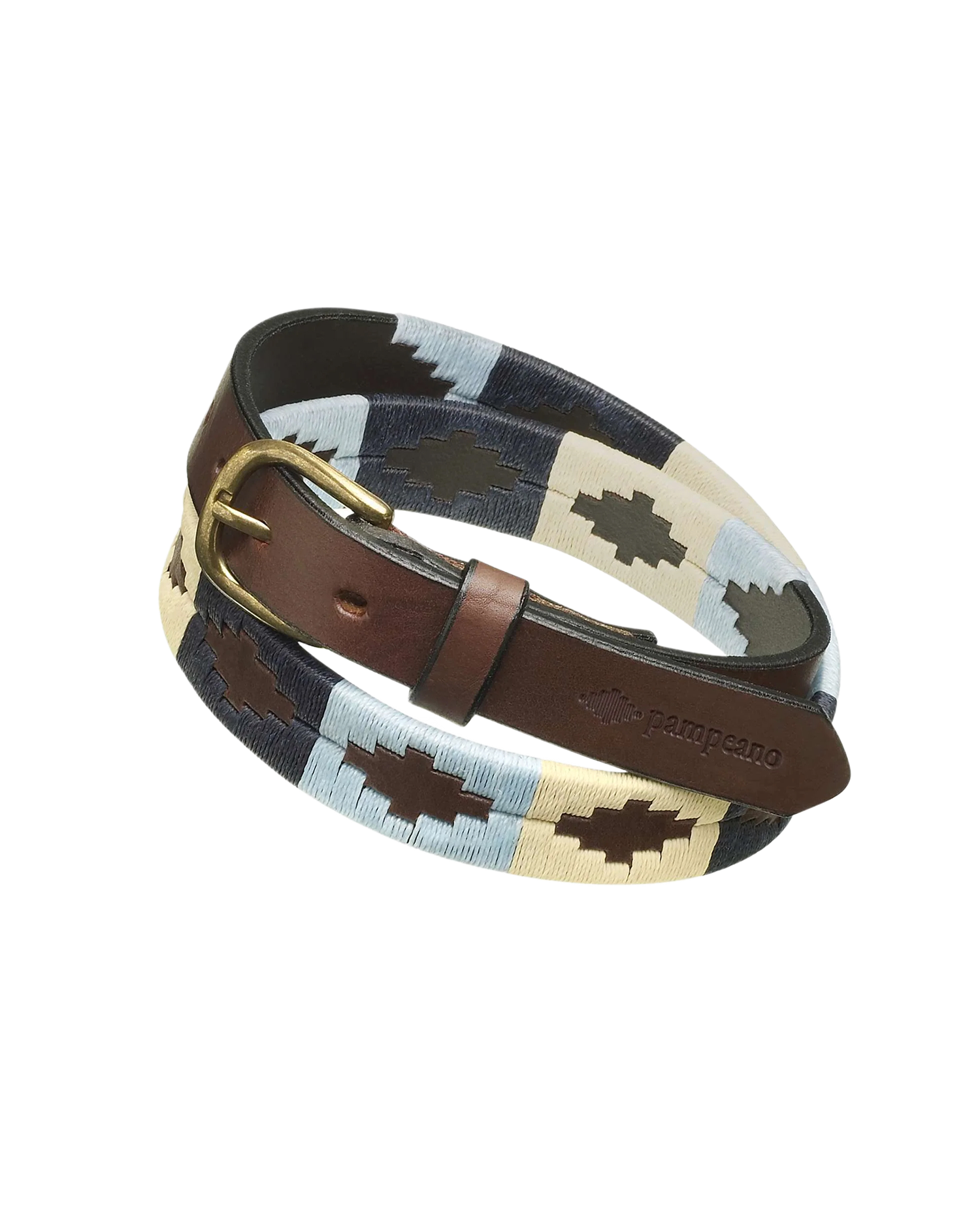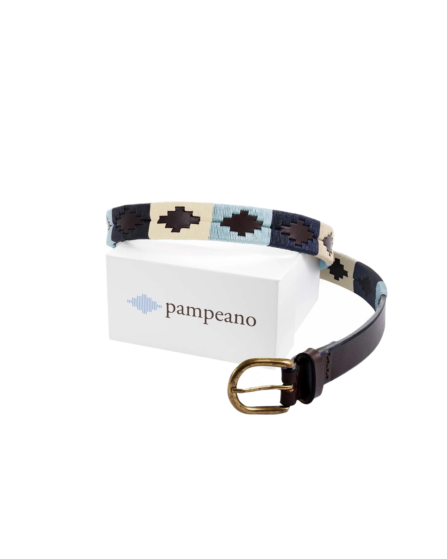 Sereno Skinny fra Pampeano er et håndlaget skinnbelte med fargerikt håndbrodert mønster (“pampa-diamant”), som gir liv til jeans eller sommerkjole uten å dominere — elegant, diskret og med karakter.
