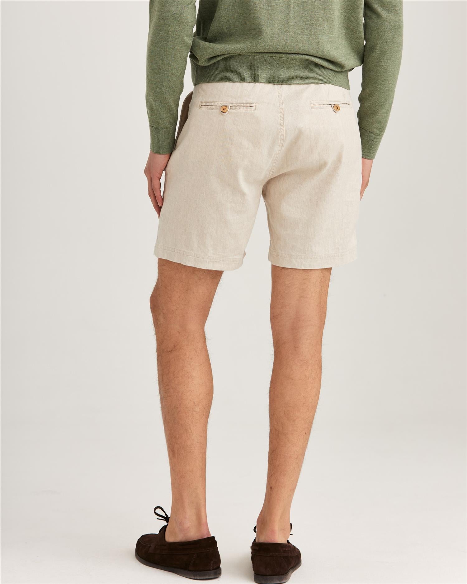 Fenix Linen Shorts fra Morris Stockholm kombinerer klassisk design med sommerlig komfort. Laget av en myk bomull/lin-blanding med en touch av elastan, gir disse shortsene en avslappet, men sofistikert stil. Den elastiske linningen med snøring og glidelåslukking sikrer en behagelig passform gjennom hele dagen.