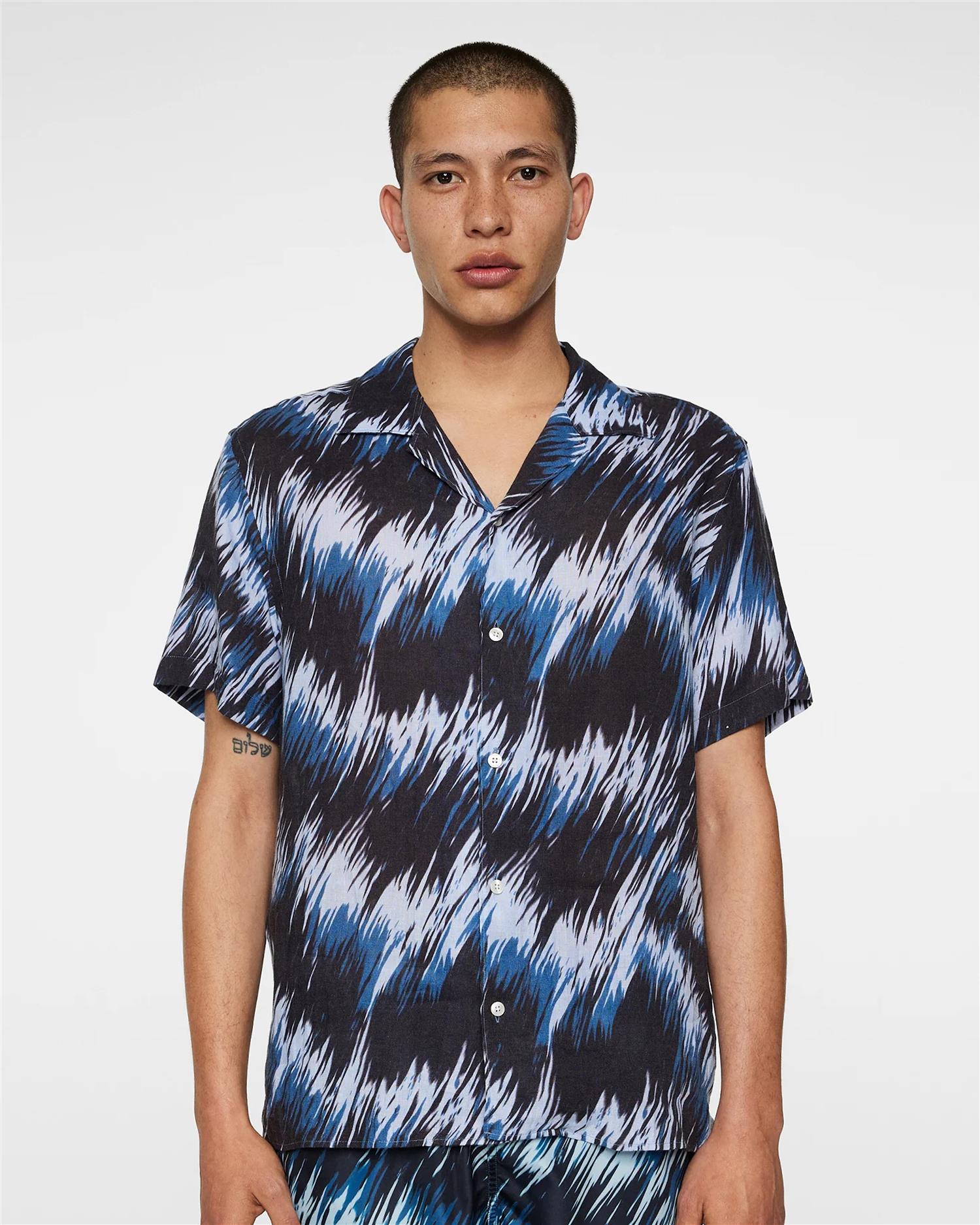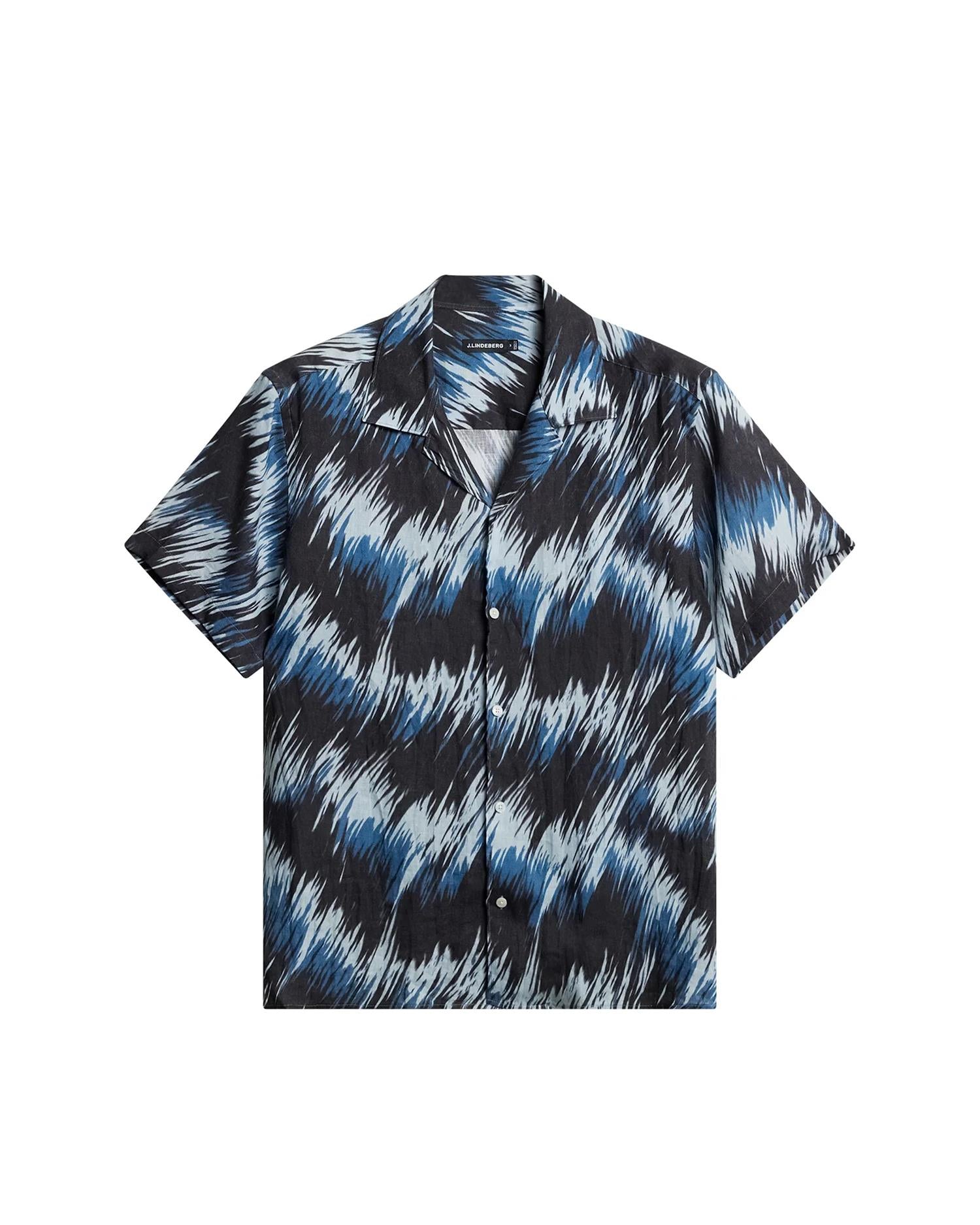 J.Lindeberg Elio Linen Printed Shirt er en kortermet skjorte i 100 % lin, designet for menn som ønsker en kombinasjon av komfort og stil. Med sitt avslappede snitt og resort-krage, gir den et moderne og uformelt uttrykk som passer perfekt for varme dager og sosiale sammenkomster. Det sesongbaserte printet tilfører et friskt og trendy preg til garderoben din.