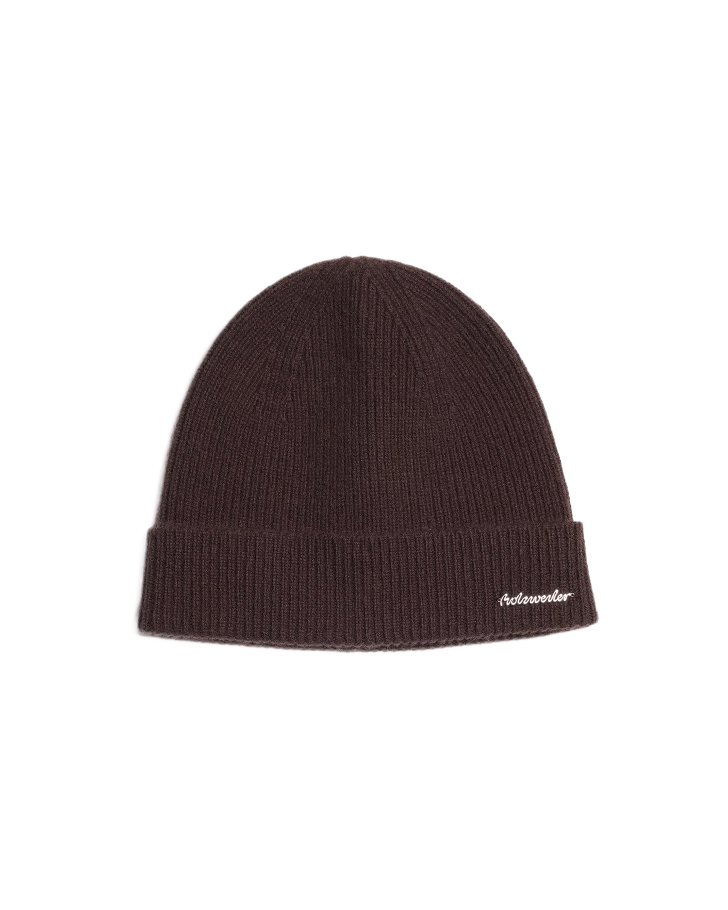• Ribbestrikket bred kant som brettes opp (upturned, ribbed brim)