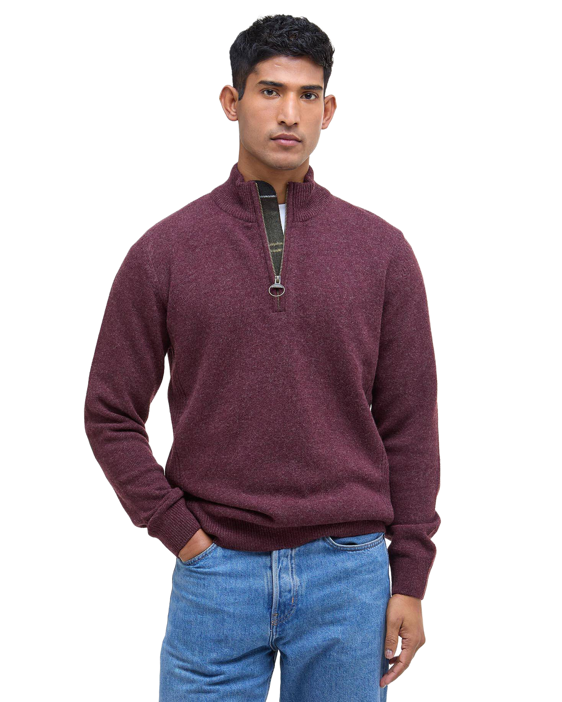 • Ribbestrikkede sidepaneler og kontrast-albuelapper med klassisk tartan-mønster — detaljene som gjør genseren tidløs og litt mer spennende.