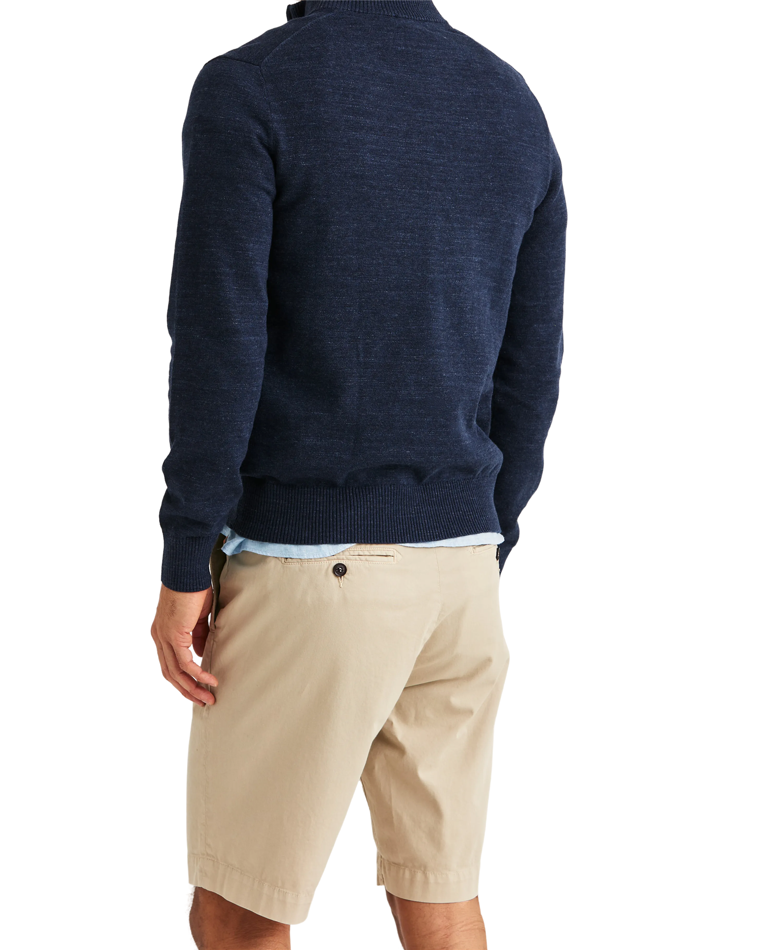 Randall Half Zip fra Morris Stockholm er en klassisk strikkegenser med half zip – laget for deg som vil ha noe som både ser ryddig ut og føles komfortabelt. Den dype 60 Navy-fargen gjør den til en sikker vinner i garderoben, enkel å kombinere med både denim, chinos og dressbukser.