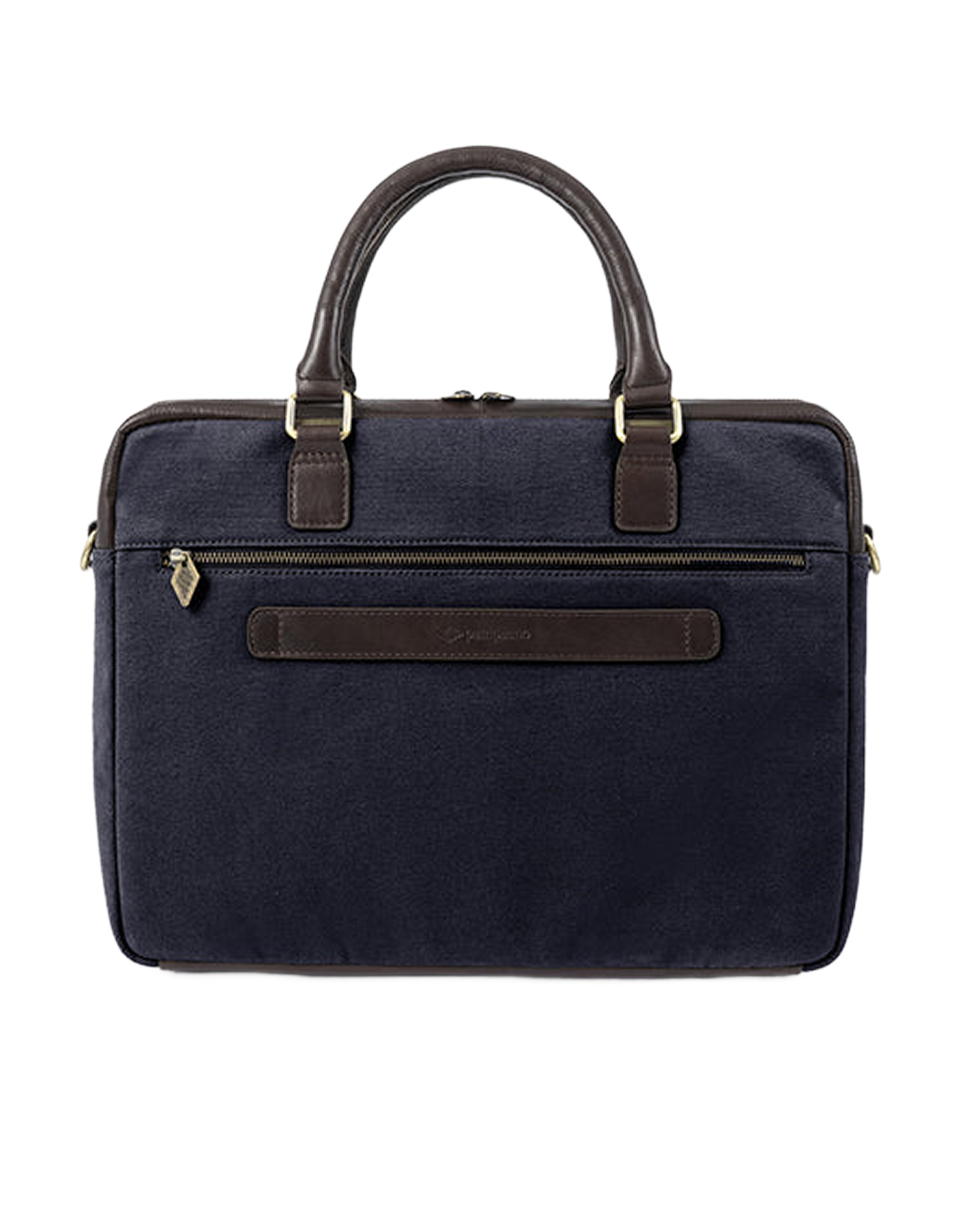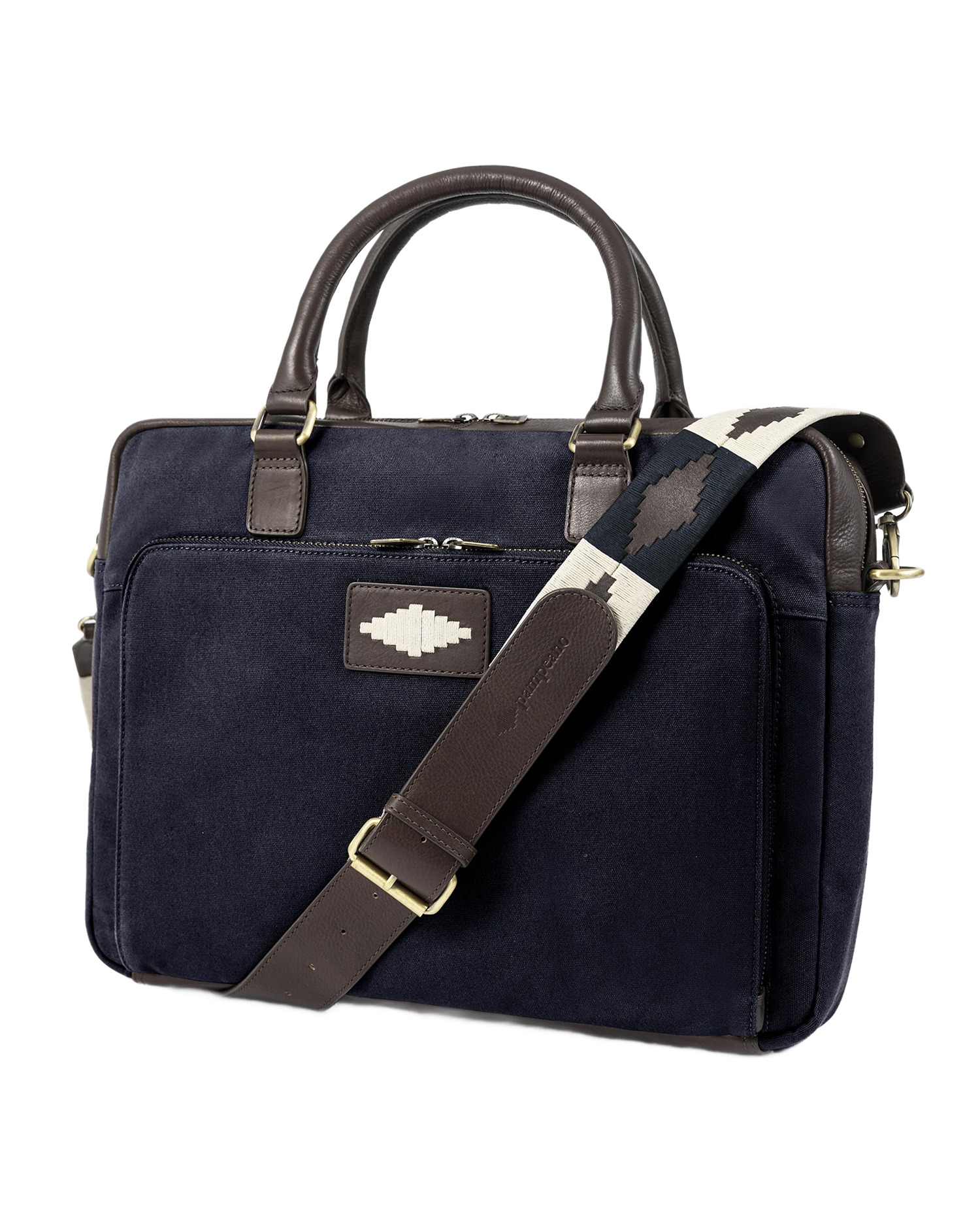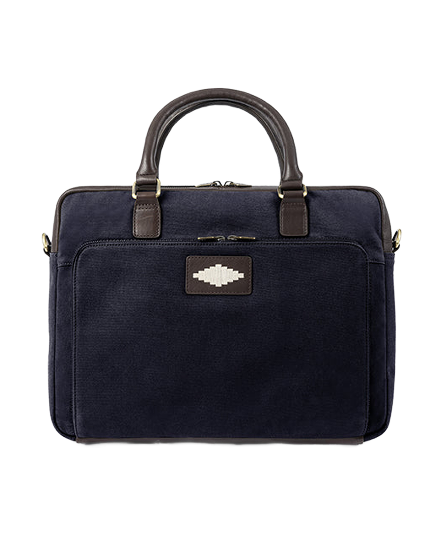 Mensajero er en tidløs dokumentveske fra Pampeano, laget for deg som liker funksjon pakket inn i godt håndverk. Kombinasjonen av slitesterk marineblå canvas og varmt, brunt vegetabilsk garvet lær gir vesken et avslappet, men gjennomført uttrykk. Designet er inspirert av klassiske messenger-vesker, men tilpasset moderne behov. Her er det plass til laptop, dokumenter og det viktigste du trenger i hverdagen – uten at det blir klumpete. En veske som bare blir bedre med bruk.