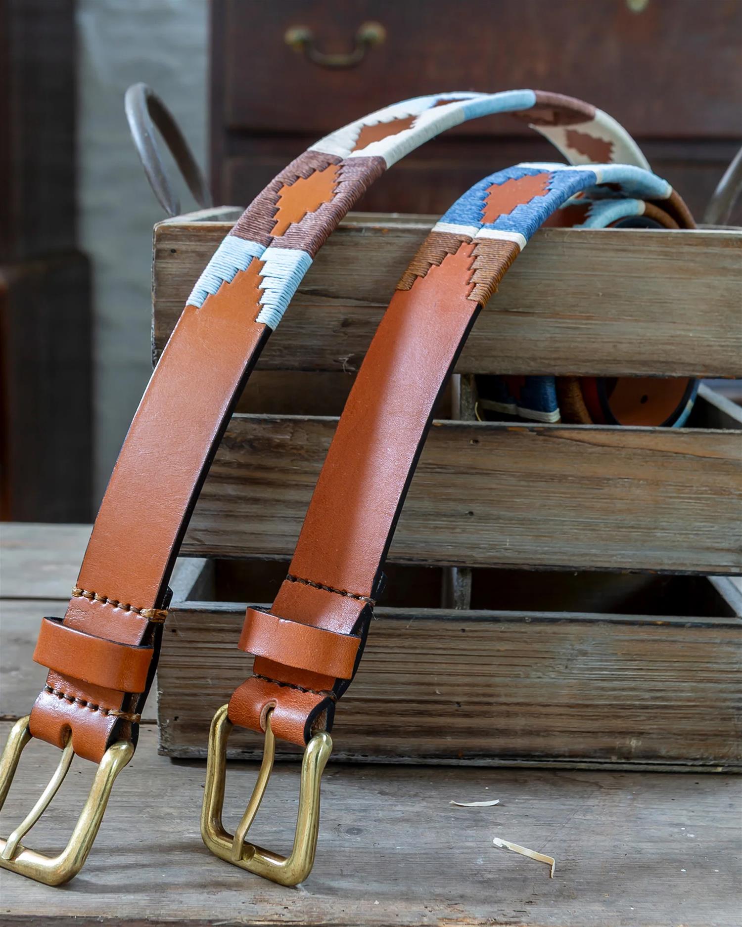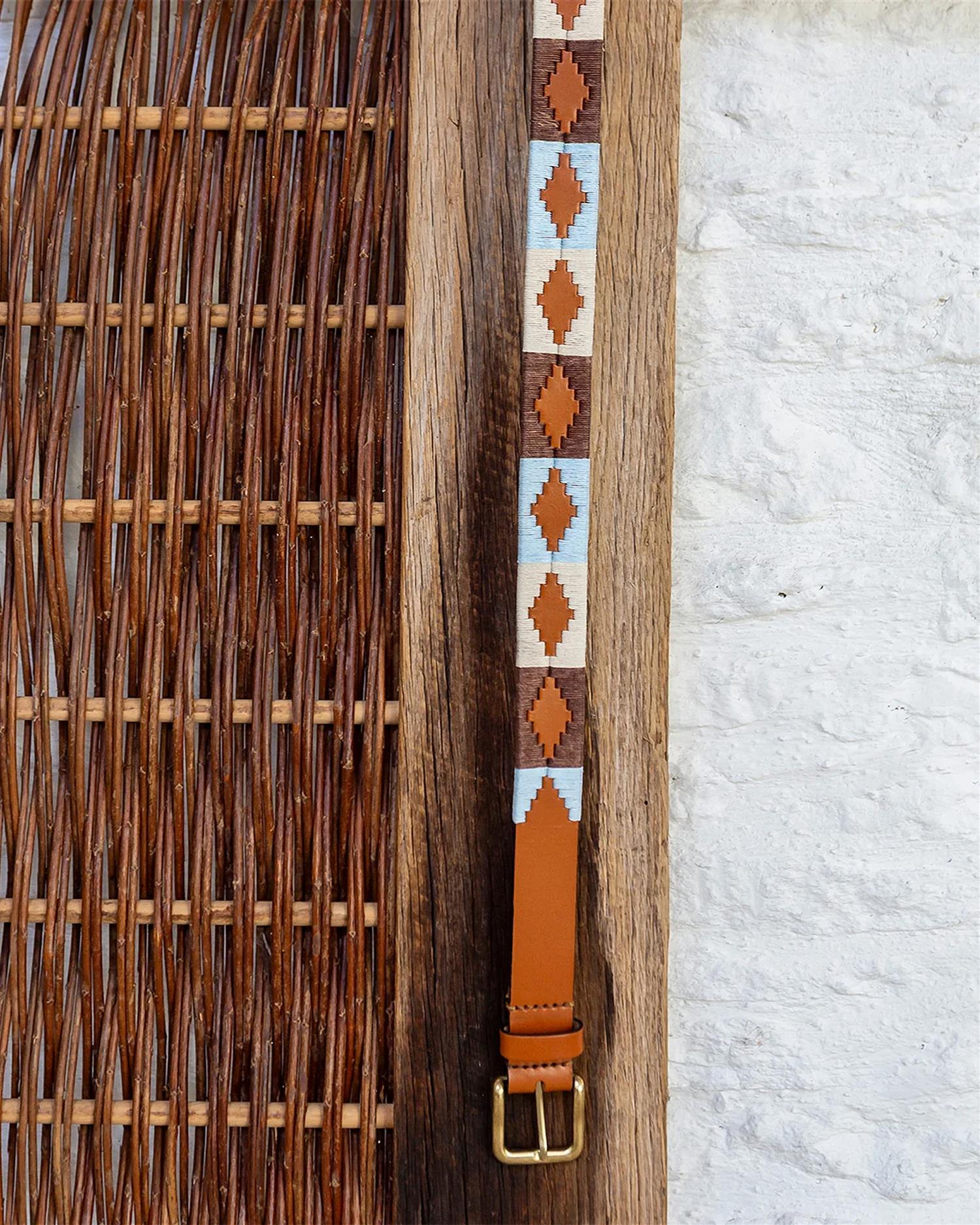Dette ikoniske polo-beltet fra Pampeano er inspirert av landskapene i Argentina – tørre sletter, støvete veier og sol som står høyt. Desierto kombinerer varme beige- og bruntoner med håndsydd mønster i vokset tråd, satt på solid, vegetabilsk garvet lær. Resultatet er et belte som funker like godt til hverdags som til litt penere anledninger.