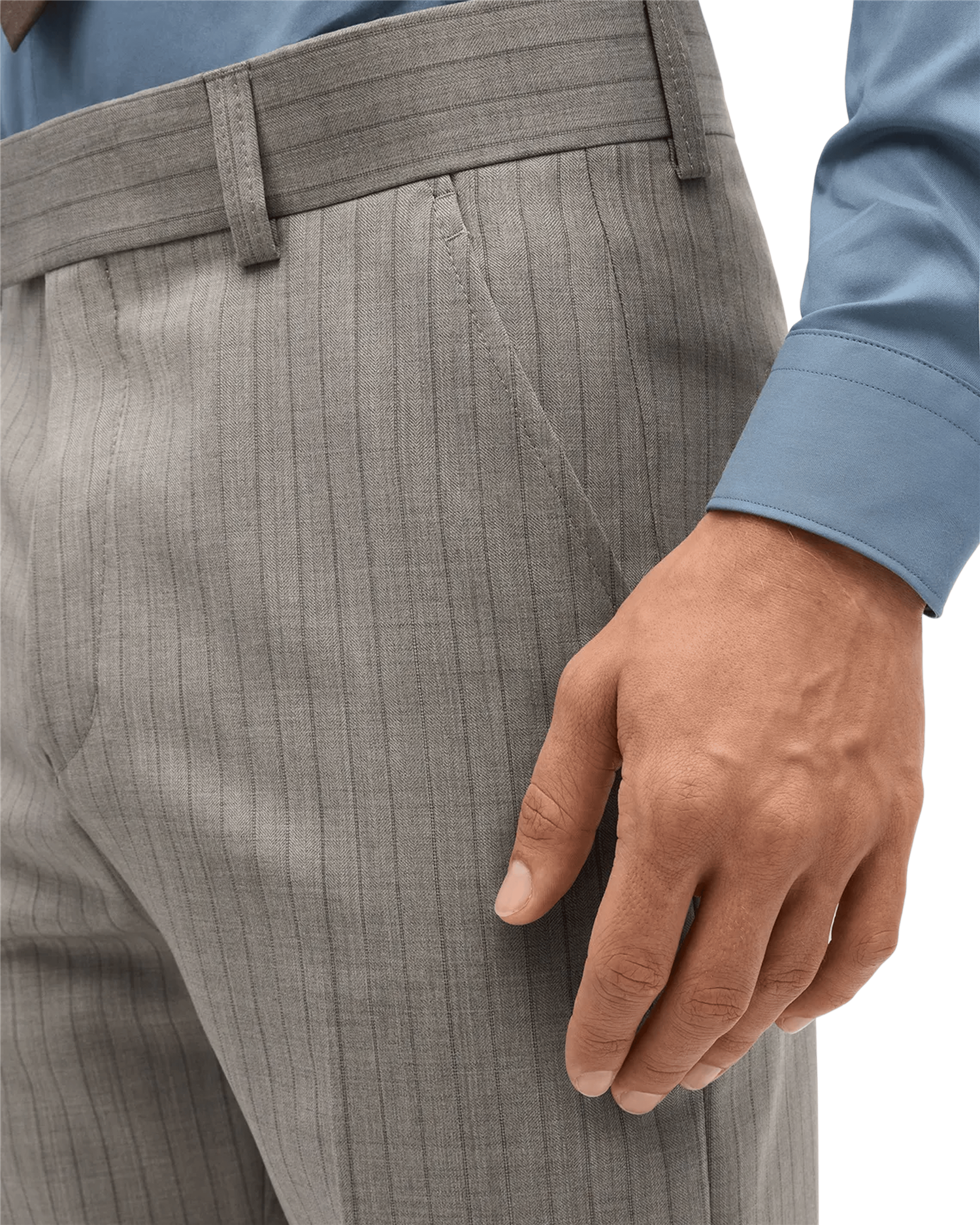 Tommie Pinstriped Wool Trousers fra Tiger of Sweden er den naturlige matchen til Ease Pinstriped Wool Jacket. Sammen utgjør de en lett og moderne dress med diskrete nålestriper og et tydelig, skandinavisk uttrykk – ryddig, presis og langt fra stiv.